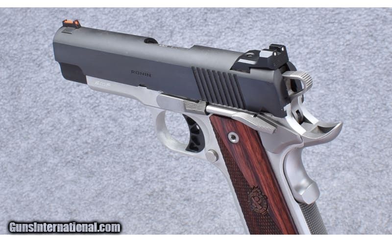 Description: Solid, pre-owned Ronin EMP shows only a few light scratches. Includes 10 round mag. 9mm Luger SOLD Metal Condition: "Blued Slide, Forged Aluminum Alloy Frame Satin Aluminum Cerakote Wood Condition: Wood Bore Condition: Bright Sharp Barrels: "4 Inch, Match Grade Triggers: Single Action Auto Weight: 31 oz Sights: "Fiber Optic Front, Tactical Rack White Dot Rear Item Location: Buda, TX |