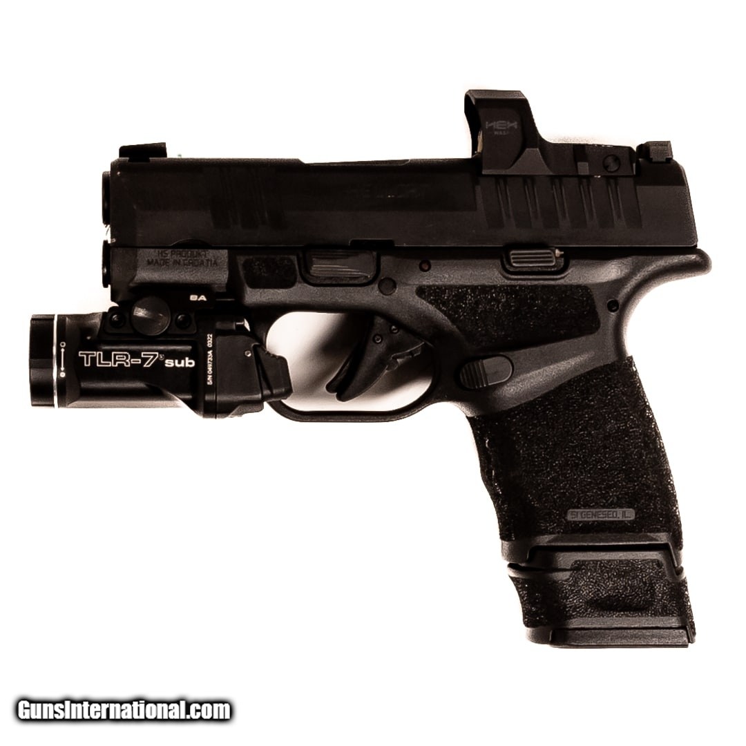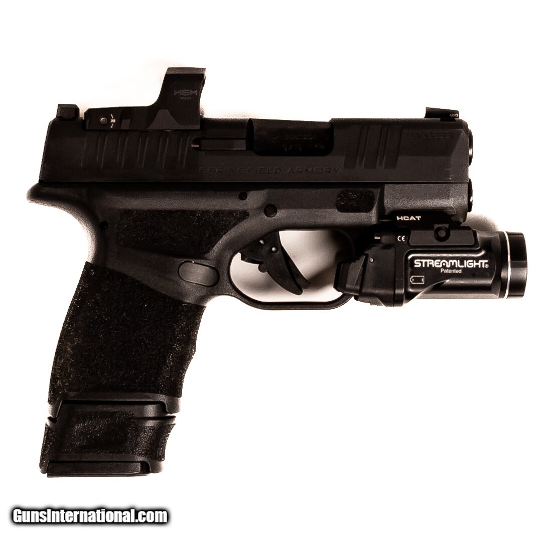 Description: Guns Listing ID: 737097 The Springfield Armory Hellcat is referred to as the world‚‚s highest capacity micro-compact. It makes an excellent handgun for concealed carry and home defense, thanks to its superior handling characteristics. This is an OSP model (Optical Sight Pistol), which means the slide is cut and ready for a micro red dot sight. This Hellcat OSP features Hi-Viz front night sights, a Hex Wasp red dot sight, and a TLR-7 sub light. Eight 15-round magazines are included. Get the best bang for your buck when you get a Certified Used Firearm . When you see the Certified Used stamp on any of our firearms, you can be confident that you’re getting exactly what you want – a gun only in very good to excellent condition and held to the highest quality standard. All Certified Used Guns come with a ‘no questions asked’ return policy . PLUS, ALL CERTIFIED USED GUNS SHIP FREE SOLD Manufacturer: SPRINGFIELD ARMORY Model: HELLCAT OSP Caliber Info: 9MM LUGER (9X19 PARA) Condition: Used - Certified Barrels: 3 barrel Finish: BLACK |
