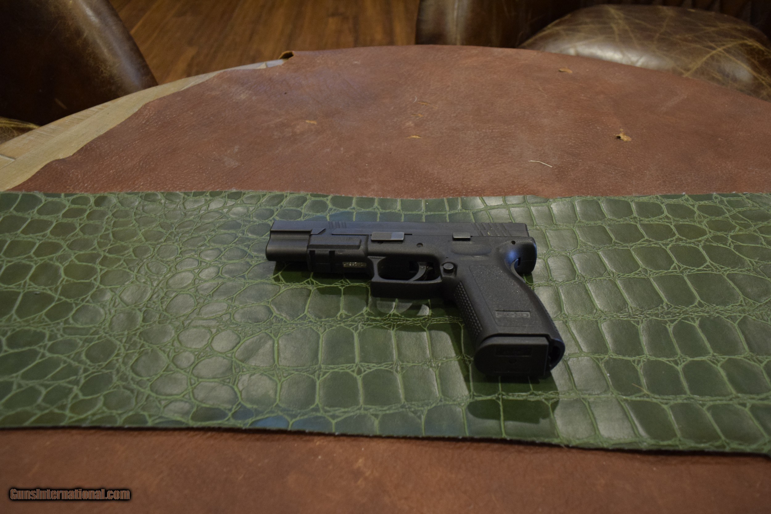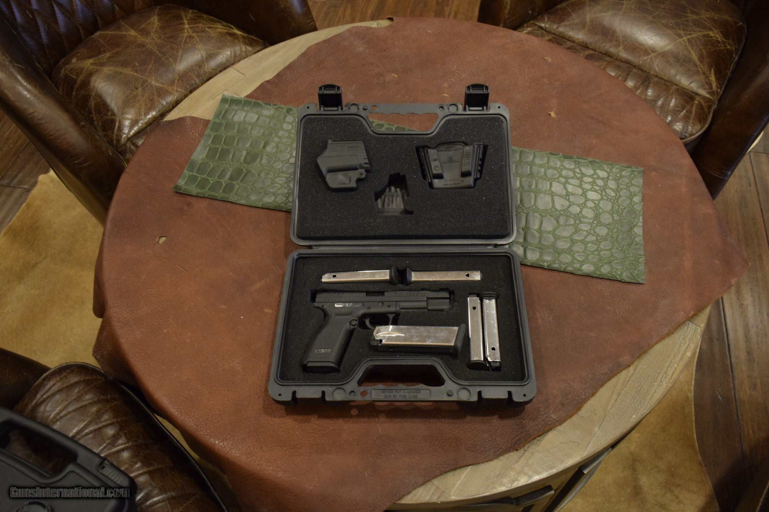 Description: The XD-M® 4.5" .45 ACP is an exceptional large-bore striker-fired polymer-framed defensive handgun. Featuring three distinct safety systems along with a crisp smooth trigger sporting a remarkably abbreviated reset, this is the rugged defensive tool that shoots like a target pistol. A full length one-piece guide rod keeps the gun running smoothly, and generous slide gripping groves both front and rear make the gun easy to run. This item comes with 6 magazines, case, holster, and mag holster. Overall condition is great with wear to the frame. Pre-Owned - Springfield XD Elite Semi-Auto 45 ACP 4" Handgun