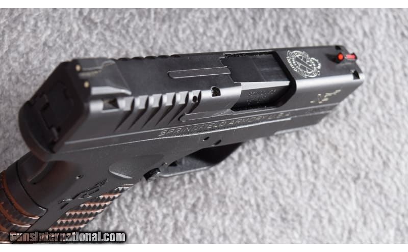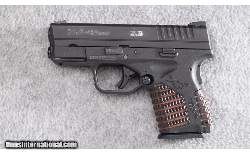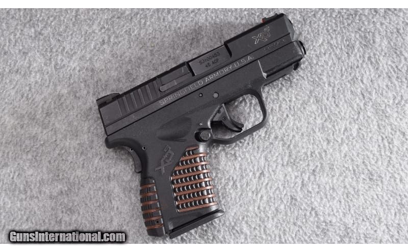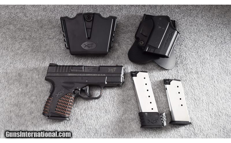 Description: Springfield Armory XDS in .45 Auto. Fiber optic front sight and two dot white rear sights. Appears as though a previous owner has colored the checkering in the grip red and highlighted the slide engraving with a silver color. Firearm comes with the original hard case, three (3) mags, magazine pouch and a polymer holster as shown in the pictures. .45 Auto SOLD Metal Condition: Very Good Bore Condition: Excellent Barrels: 3 1/2 Triggers: Factory Butt Pad: Checkered Black Polymer Grip Weight: 3 1/2 lbs Sights: Fiber Optic Red Front Sight - 2 Dot White Rear Item Location: Wheeling |