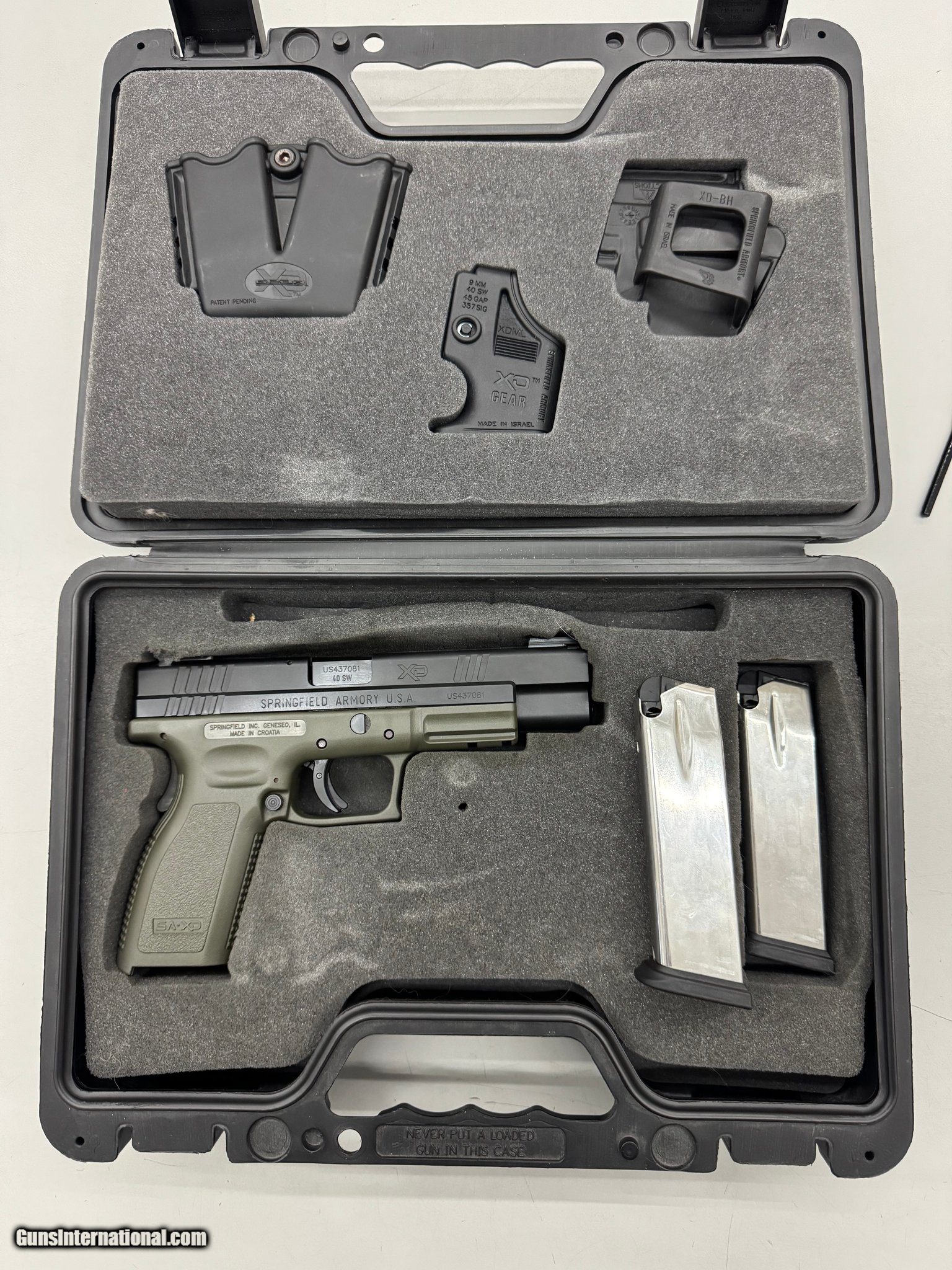 Description: Guns Listing ID: 477541 This XD comes with its original hard case, 2 magazines, a holster, a double magazine carrier, and a speed loader. SOLD Manufacturer: SPRINGFIELD ARMORY Model: XD-40 Condition: Used - Non-Certified Barrels: 5 Gauge Info: .40 S&W Finish: odg |