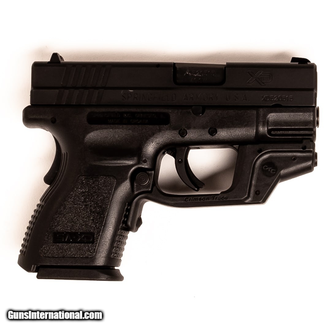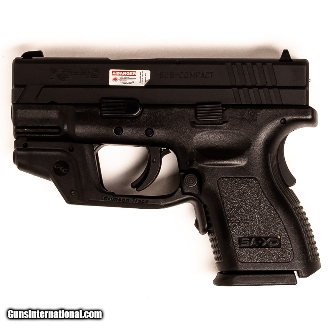 Description: Guns Listing ID: 638951 The Springfield Armory XD-40 Sub-Compact is a great handgun for daily carry. It‚‚s easy to conceal, packs a punch, and boasts rock-solid reliability. This XD-40 features a Crimson Trace laser on the trigger guard. Purchase includes the original case, manual, one 9-round magazine, one 12-round magazine, a loader, a right-handed OWB holster, and a dual mag carrier SOLD Manufacturer: SPRINGFIELD ARMORY Model: XD-40 SUB-COMPACT Caliber Info: .40 S&W Condition: Used - Certified Barrels: 3 barrel Finish: BLACK |