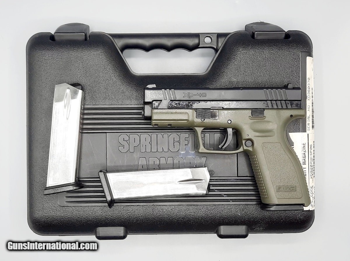 Description: Guns Listing ID: 697404 This firearm is in very good condition and comes with the 2 extra 12 round mags in the pictures provided SOLD Manufacturer: SPRINGFIELD ARMORY Model: XD-40 Caliber Info: .40 CALIBER Condition: Used - Non-Certified Barrels: 4 BARREL Finish: OLIVE GREEN |