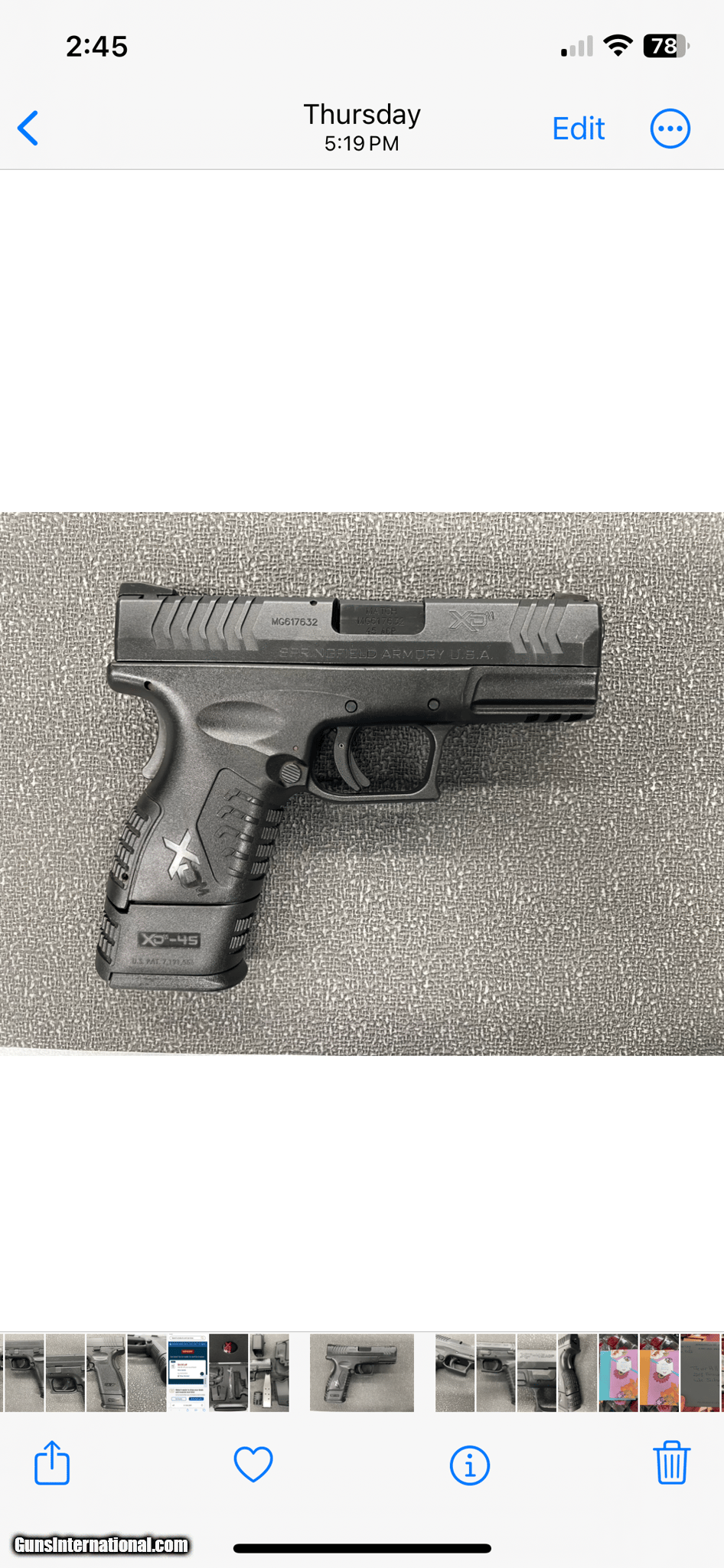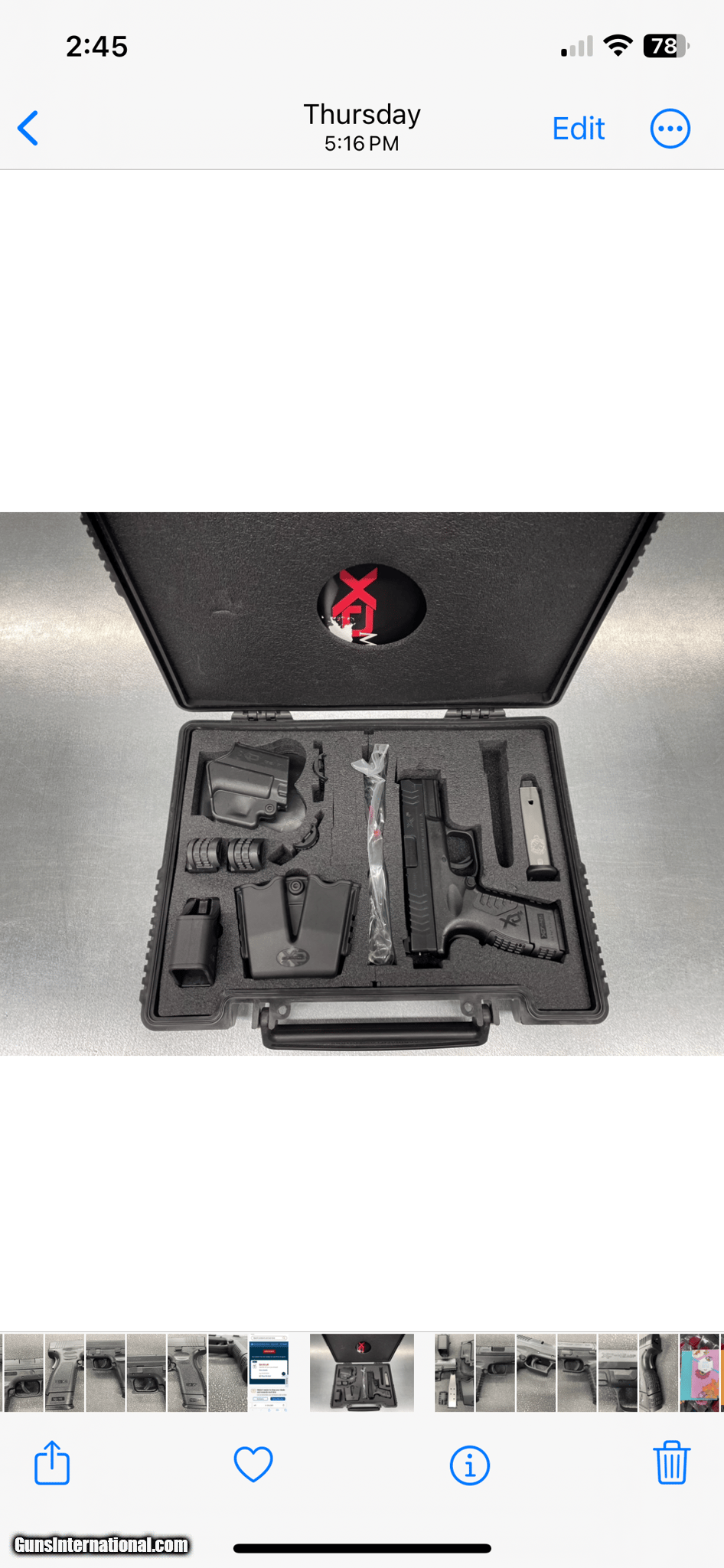 Description: Guns Listing ID: 1290025 Used Springfield Armory XDM-45 Compact 3.8, .45 ACP. Has some scratches and scuffs on it. Includes hard case, extra mag, cleaning brush, holsters, 2 backstraps, speed loader, and 2 mag extensions. (All shown in first 2 photos) SOLD Manufacturer: SPRINGFIELD ARMORY Model: XDM-45 COMPACT 3.8 Caliber Info: .45 ACP Condition: Used - Non-Certified Barrels: 3.8 BARREL Finish: BLUED |