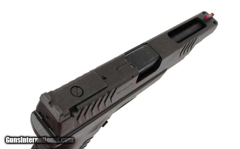Description: This Springfield Armory Model XDM-9 is a right hand semi-auto pistol in 9mm Cal. It has a 5.25 inch barrel with a front and rear serrated slide. A red high visibility front sight and an adjustable notch rear sight. The grip is a deep checkered black polymer. It has a lower accessory rail and loaded chamber indicator. 9mm Luger SOLD Metal Condition: EXCELLENT Bore Condition: CLEAN & BRIGHT Barrels: 5.25 Triggers: MATCH GRADE TRIGGER Weight: 1 Lb 14 Oz Sights: "FIBER OPTIC FRONT, ADJ. REAR MATCH SIGHTS Item Location: Grandville, MI |