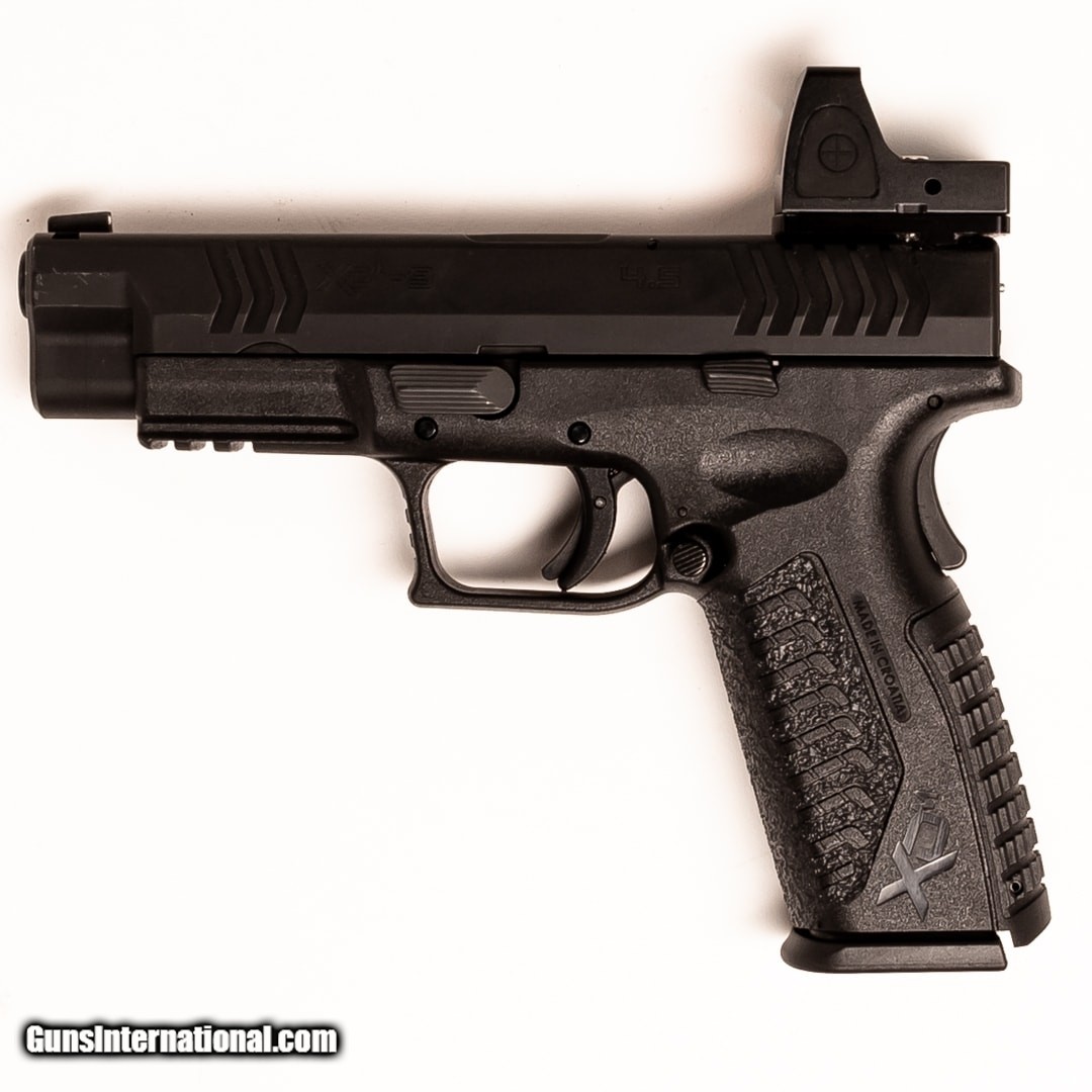 Description: Guns Listing ID: 616644 The Springfield Armory XDM-9 is a full-size pistol that delivers accuracy and reliability like none other, making it a favorite among competitors. The ergonomically sound design, natural shootability, and host of safety features make it equally well-favored for self-defense. This XDM-9 is equipped with a red dot sight mounted via dovetail rear sight mount. Purchase includes three 19-round magazines, three sizes of backstraps, an extra optic mount, and a right-handed OWB Crossbreed beltloop holster with dual beltloop magazine carrier. SOLD Manufacturer: SPRINGFIELD ARMORY Model: XDM-9 Caliber Info: 9MM LUGER (9X19 PARA) Condition: Used - Certified Barrels: 4.5 barrel Finish: BLACK |