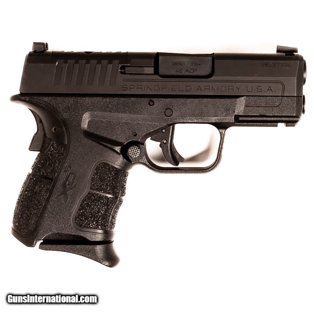 Description: Guns Listing ID: 675274 Award-winning and easy to conceal, the Springfield Armory XDS-45 Mod.2 3.3\" is a great handgun for close-range personal protection. This model is in excellent condition! Purchase includes the original box, soft case, manual, one 5-round magazine, and one 6-round magazine. Get the best bang for your buck when you get a Certified Used Firearm . When you see the Certified Used stamp on any of our firearms, you can be confident that you’re getting exactly what you want – a gun only in very good to excellent condition and held to the highest quality standard. All Certified Used Guns come with a ‘no questions asked’ return policy . PLUS, ALL CERTIFIED USED GUNS SHIP FREE! SOLD Manufacturer: SPRINGFIELD ARMORY Model: XDS-45 3.3 MOD.2 Caliber Info: .45 ACP Condition: Used - Certified Barrels: 3.3 barrel Finish: BLACK |