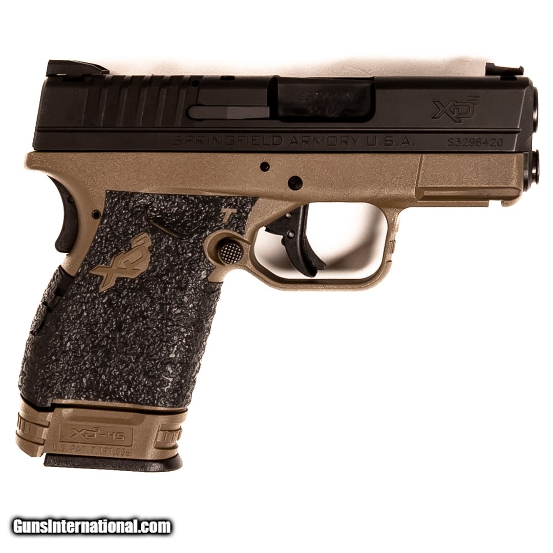 Description: Guns Listing ID: 663977 The Springfield Armory XDS-45 3.3\" is a small semi-automatic handgun designed for concealed carry. It is chambered in 45 ACP, which packs a punch but is still controllable. This XDS-45 3.3\" has Talon grips and includes one 5-round magazine and one 6-round magazine. Get the best bang for your buck when you get a Certified Used Firearm . When you see the Certified Used stamp on any of our firearms, you can be confident that you’re getting exactly what you want – a gun only in very good to excellent condition and held to the highest quality standard. All Certified Used Guns come with a ‘no questions asked’ return policy . PLUS, ALL CERTIFIED USED GUNS SHIP FREE! SOLD Manufacturer: SPRINGFIELD ARMORY Model: XDS-45 3.3 Caliber Info: .45 ACP Condition: Used - Certified Barrels: 3.3 barrel Finish: FDE/BLACK |
