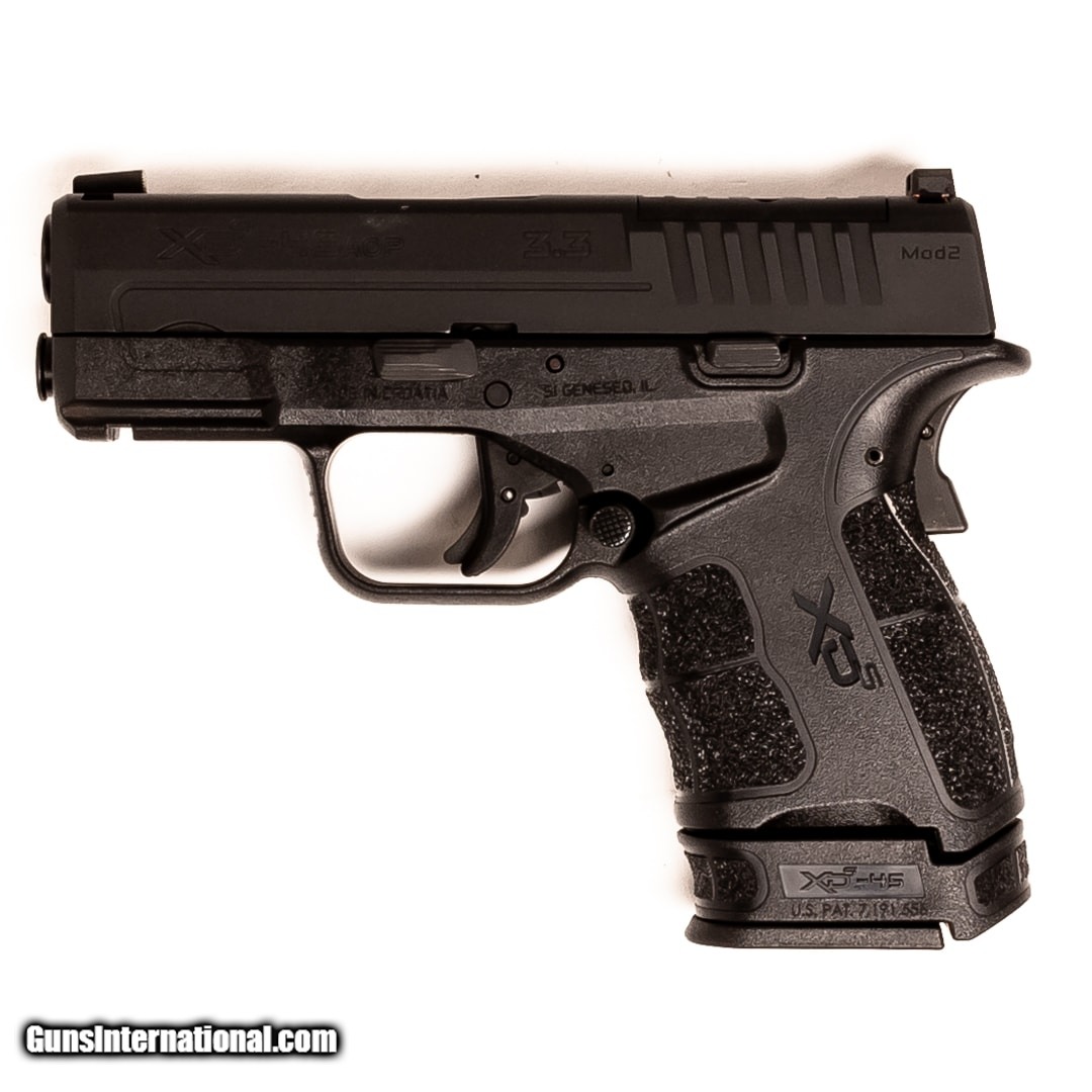 Description: Guns Listing ID: 658961 The Springfield Armory XDS-45 3.3\" is a small semi-automatic handgun designed for concealed carry. It is chambered in 45 ACP, which packs a punch but is still controllable. This XDS-45 3.3\" features a red dot and includes two range bags, two 5-round magazines, and three 6-round magazines. Get the best bang for your buck when you get a Certified Used Firearm . When you see the Certified Used stamp on any of our firearms, you can be confident that you’re getting exactly what you want – a gun only in very good to excellent condition and held to the highest quality standard. All Certified Used Guns come with a ‘no questions asked’ return policy . PLUS, ALL CERTIFIED USED GUNS SHIP FREE! SOLD Manufacturer: SPRINGFIELD ARMORY Model: XDS-45 Caliber Info: .45 ACP Condition: Used - Certified Barrels: 3.25 BARREL Finish: BLACK |