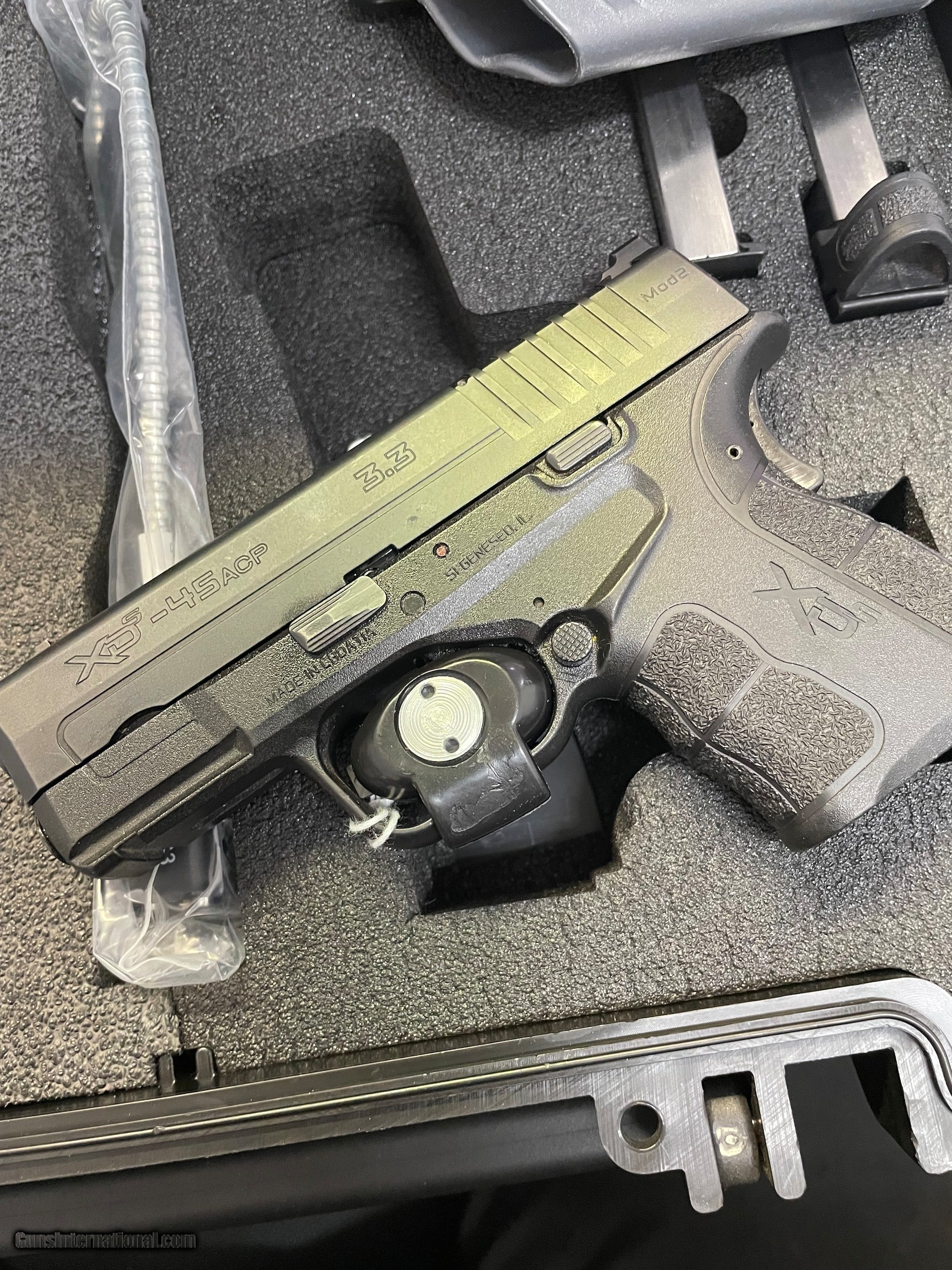 Description: Guns Listing ID: 484163 CALIBER .45 ACP COLOR Black BARREL 3.3\" Hammer Forged Steel, Melonite® Finish, 1:16 SLIDE Forged Steel, Melonite® Finish FRAME Black Polymer w /Enhanced Grip Texture SIGHTS White Dot Front, Serrated Rear RECOIL SYSTEM Dual Captive Recoil Spring w/ Full Length Guide Rod GRIP WIDTH .9\" MAGAZINES (1) 5-Round, (1) 6-Round Extended WEIGHT 23 oz w/ Flush Mag, 24 oz w/ Extended Mag LENGTH 6.3\" HEIGHT 4.4\" w/ Flush Mag, 5\" w/ Extended Mag MSRP $465 SPEC SHEET MANUAL WARRANTY SOLD Manufacturer: SPRINGFIELD ARMORY Model: XDS MOD 2 Caliber Info: 45 ACP Condition: Used - Non-Certified Barrels: 3.3 barrel |