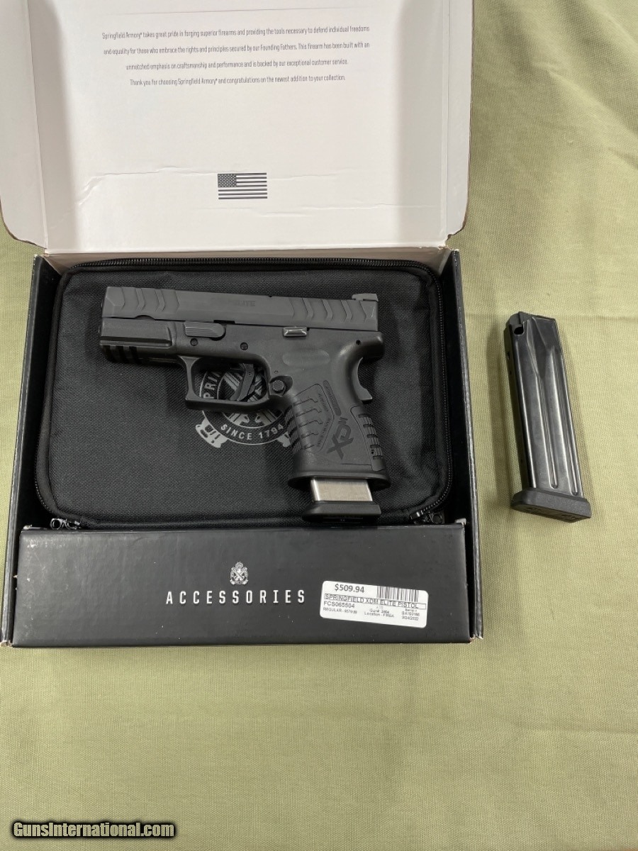 Description: Guns Listing ID: 632514 Inventory Number: FCS065504 Description: PISTOL: SPRINGFIELD ARMORY MODEL XDM ELITE, MATTE BLACK, YES - INCLUDES ORIGINAL BOX, 9MM PARABELLUM, SEMI - AUTOMATIC Specific Details: NRA Modern Gun Condition Rating Standards: EXCELLENT: New condition, used but little, no noticeable marring of wood or metal, bluing perfect, (except at muzzle or sharp edges). Finish / Color: Matte Black Case & Box: Yes - Includes original box Caliber: 9mm Parabellum Action: Semi - Automatic Magazine: Yes - and includes 1 extra magazine Holster: No - Not Included SOLD Manufacturer: SPRINGFIELD Model: XDM ELITE Caliber Info: 9MM Condition: Used - Non-Certified Barrels: 3.5 BARREL Finish: BLUE |