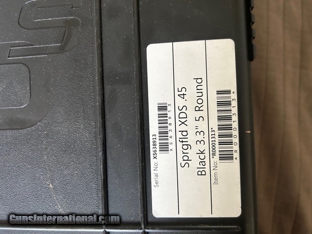 Springfield XDS .45 ACP Slimline Ultra Compact 3.3" 5+1 XDS93345B5 -5rd Mags Plus 5 Mag Extensions - NIB