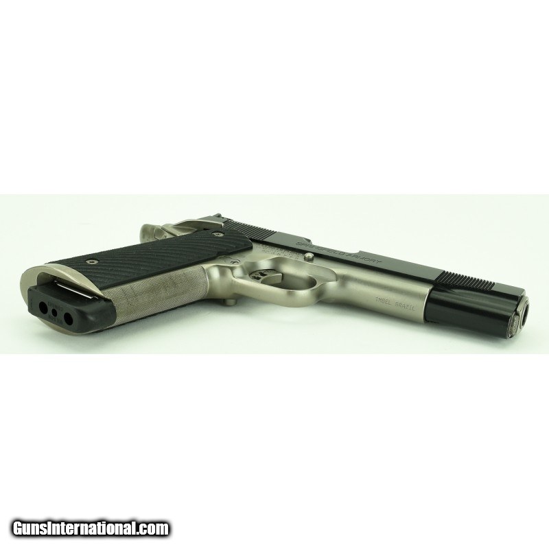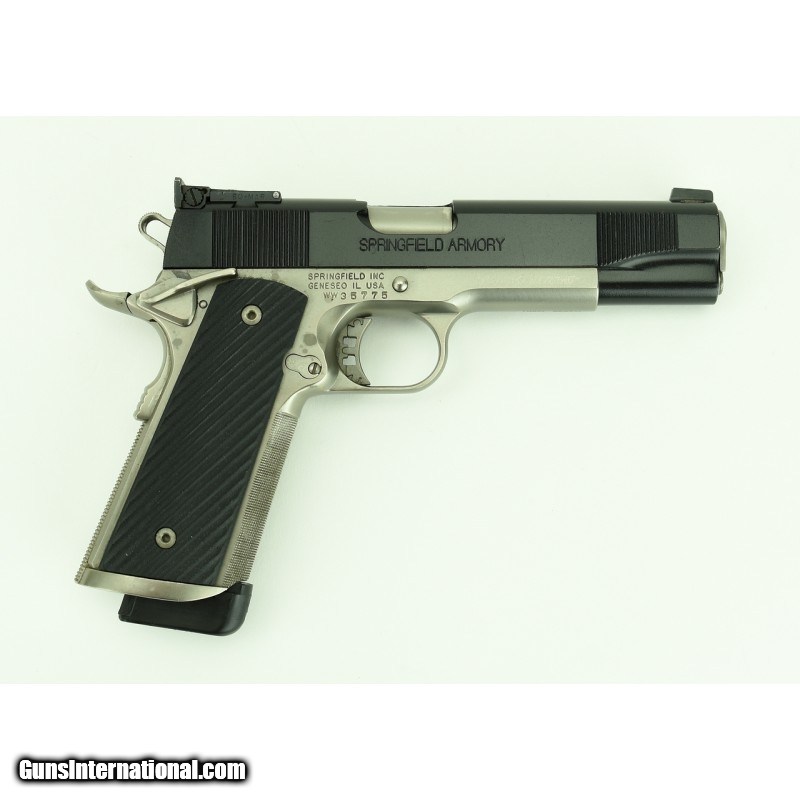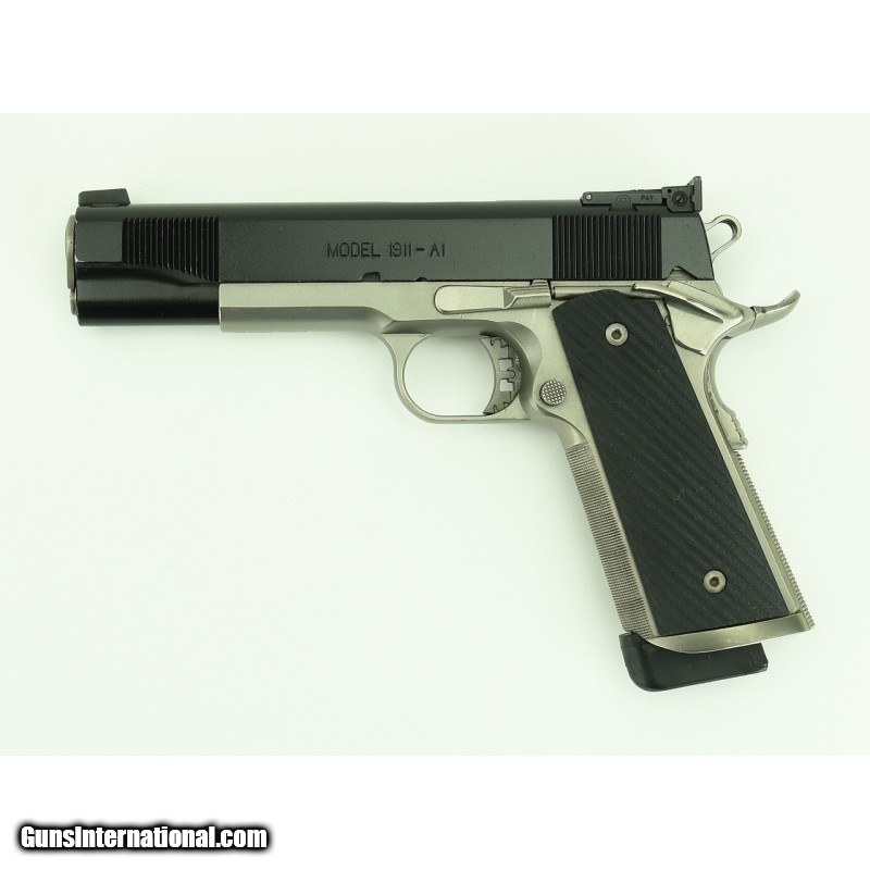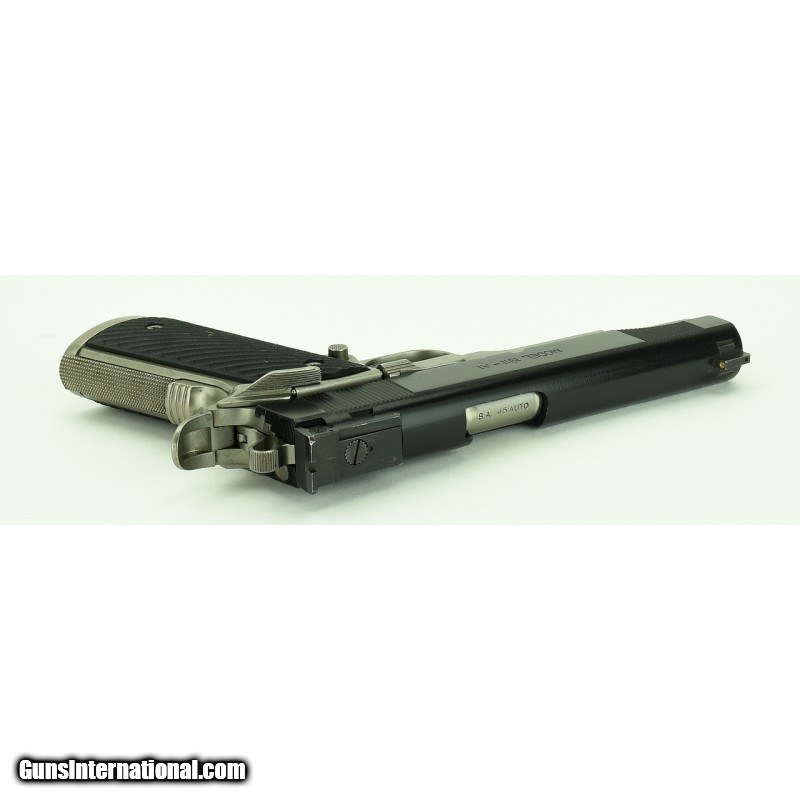 Description: "Springfield 1911-A1 .45ACP caliber pistol. Custom target gun with Bo-Mar sights, checkered grip strap, upgrade fire controls and trigger job, and Magwell. The frame is marked “Phil’s Custom". A good gun in very good condition. SOLD |