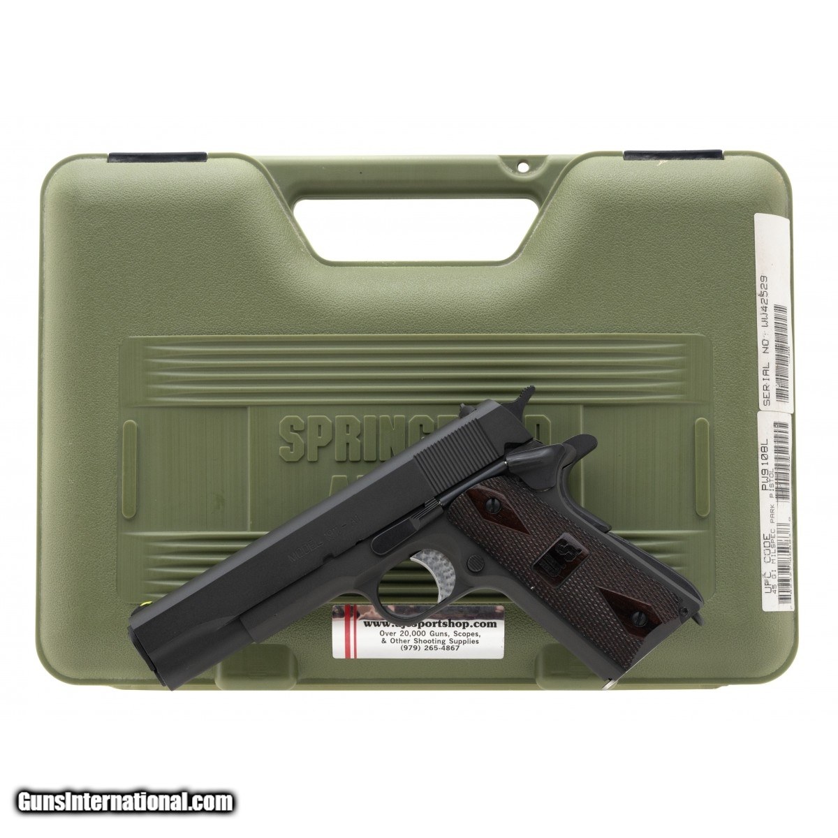 Description: "SN:WW42529.Modern production, .45ACP with a 5"" barrel. Bore is in excellent condition. Full size 1911 with Gi length guide rod parkerized finish and U.S wooden grips. Overall condition is excellent. Comes with box. Austin Location SOLD |