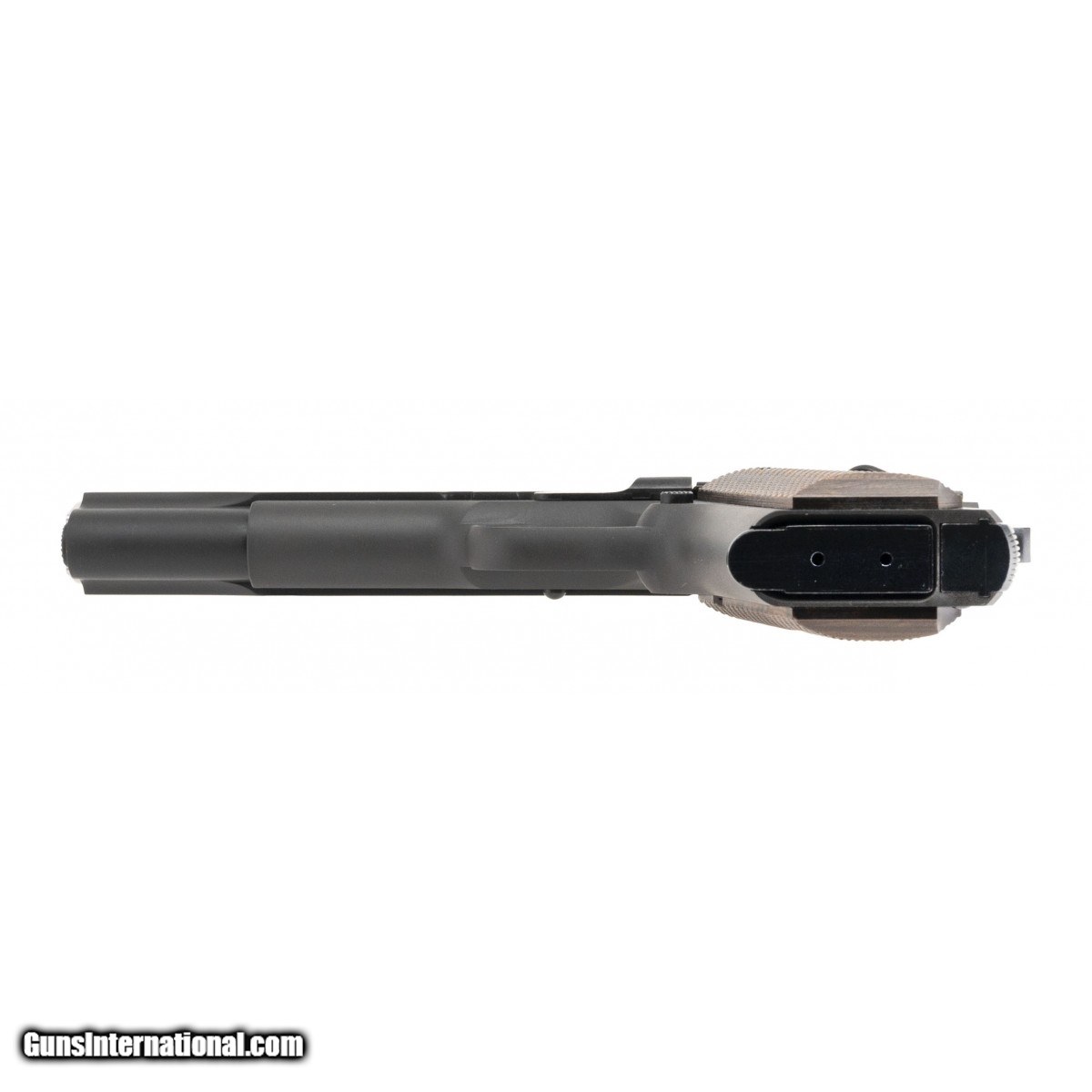 Full size metal frame pistol with a 5"" match grade barrel, manual thumb safety and, wood grips. Overall in excellent condition, comes with the box.