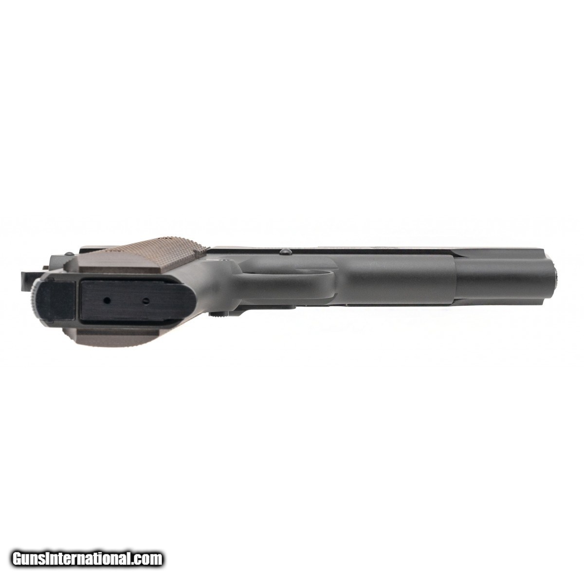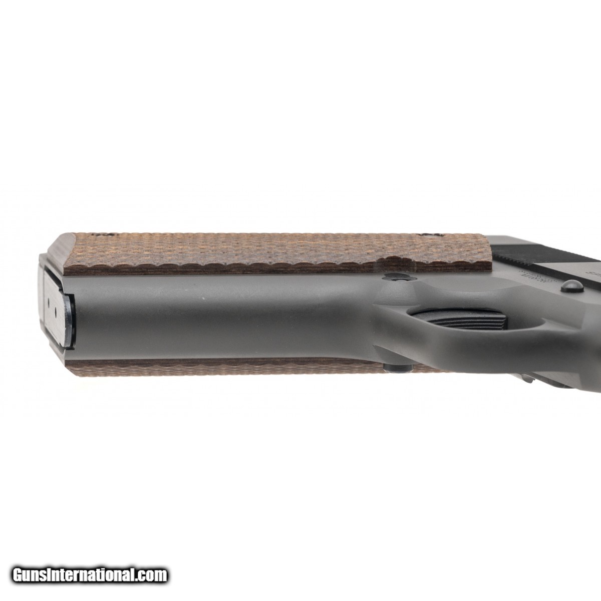 SN: NM687560. Modern production 1911 made by Springfield in .45 with a 5"" barrel. Bore is excellent with strong rifling. Government size steel frame 1911. Finish and wood checkered grips are in excellent condition. Comes with soft carrying case and 2 extra magazines.