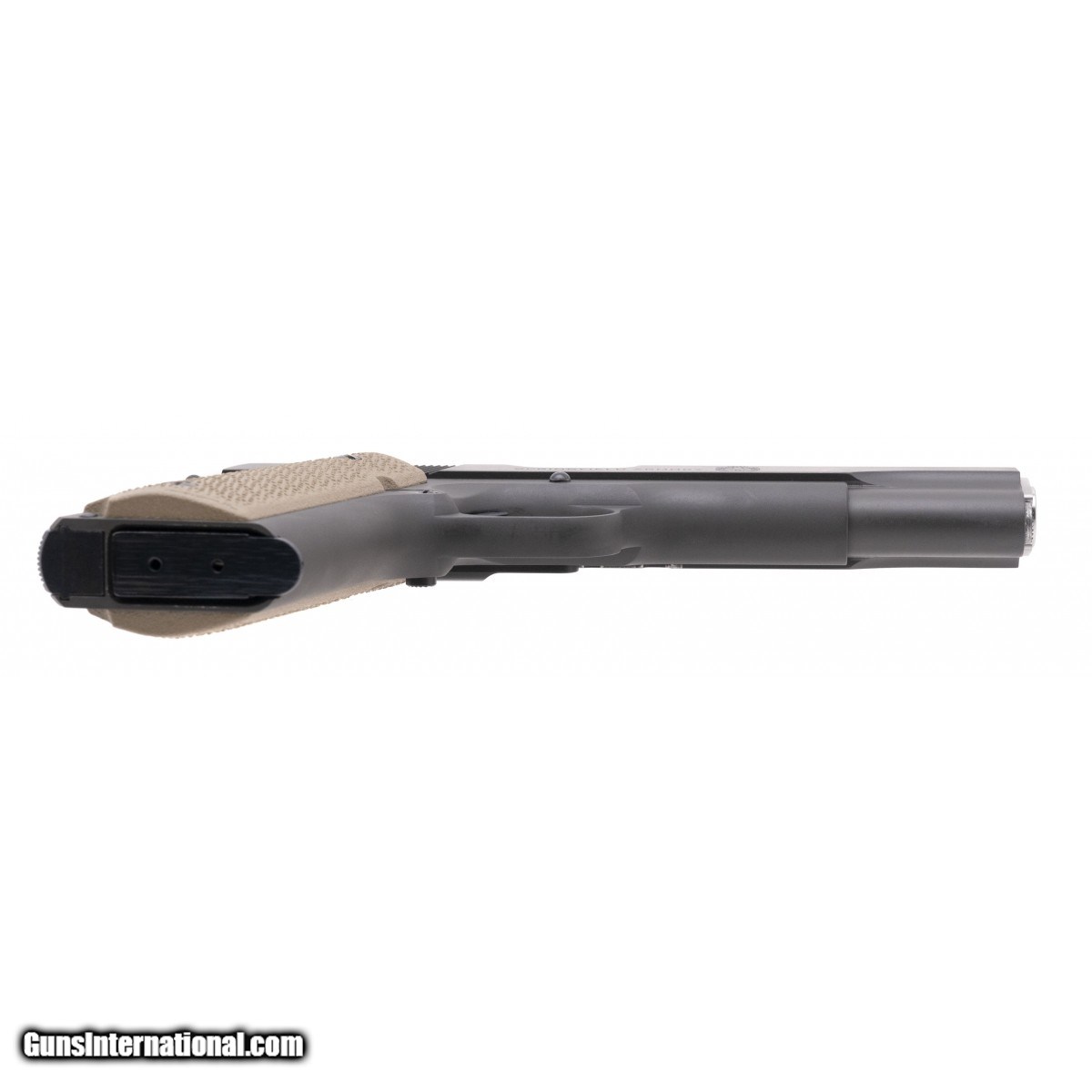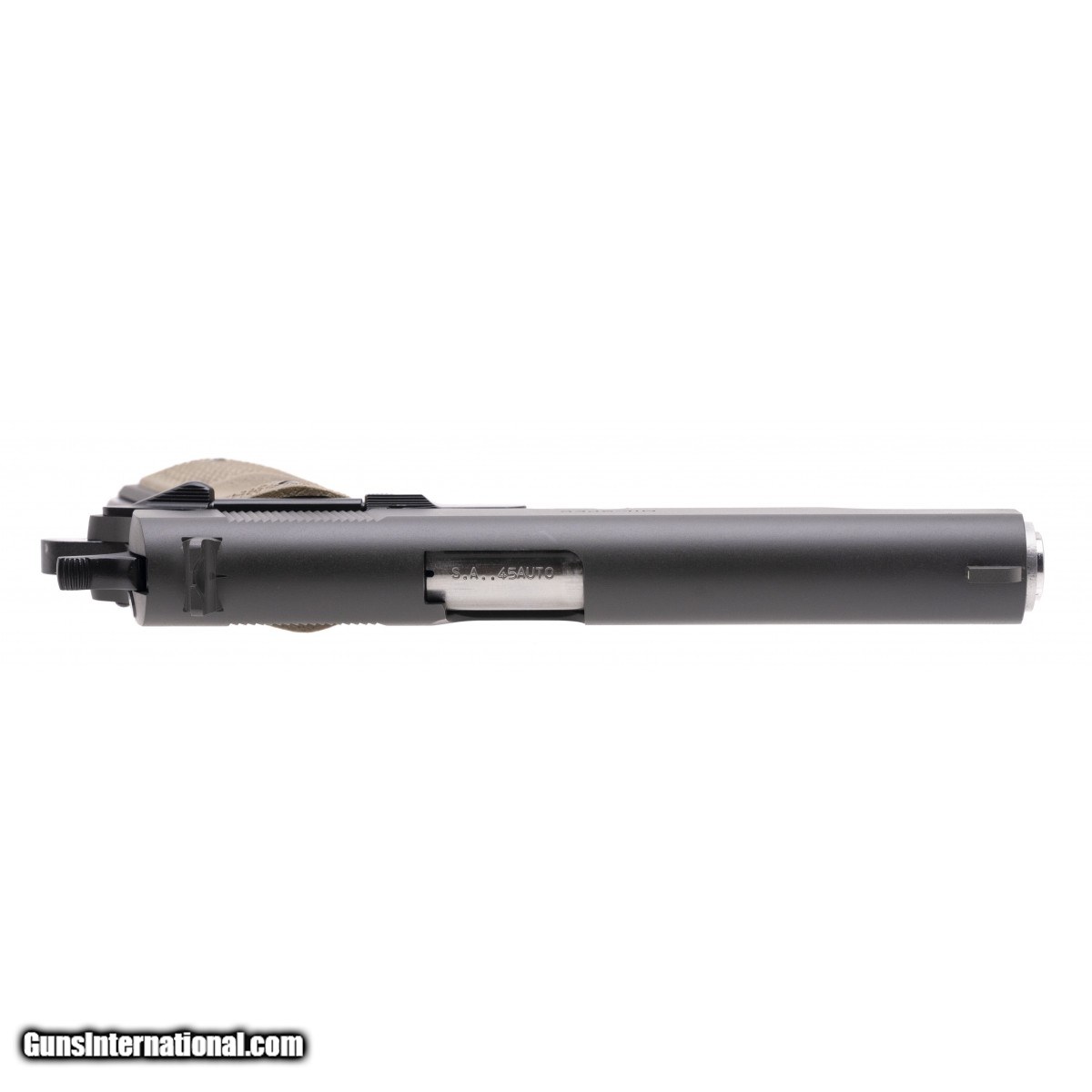 Description: "SN: NM807430. Modern production. .45 ACP with a 5"" barrel. Bore is in excellent condition. Government size steel frame 1911 with tritium night sights. Finish is in excellent condition. Upgraded Grips are in excellent condition. Comes with soft carrying case and factory grips. SOLD |