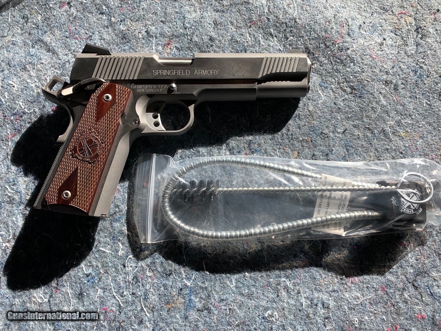 Description: NEW IN BOX!!! The Stainless Steel Mil-Spec is built on a full-size frame and slide. The pistol is made from stainless steel, which has a polished finish on the flat surfaces and bead-blasted matte finish on the rounded areas. The 5 inch barrel is match grade and made from stainless steel. The slide features slanted serrations on the rear only. The mainspring housing is the original arched style found on GI issue 1911-A1s. The pistol also has a standard spur hammer and standard grip safety. The single-sided, non-extended thumb safety and short military combat trigger are true to the original 1911-A1 design. SOLD Manufacturer: SPRINGFIELD ARMORY Model: 1911-A1 Caliber Info: .45 Condition: NEW IN BOX Action: semi auto Finish: STAINLESS Weight: 2.7LBS |