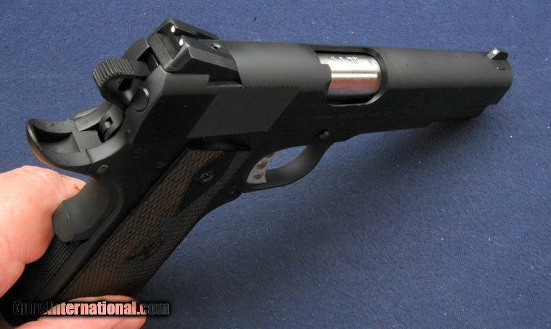 Description: New model here, this is the first we have seen. 5" barrel, blue steel, 9mm chambering. Beavertail grip safety, right hand paddle safety, checkered flat mainspring housing. Novak style sights. Comes in the factory box with one 8 round mag, safety lock, manual and all inserts. $35 shipping to the lower 48, 3% surcharge for using a CC. If you choose to pay with a personal check, we will hold the item for up to 10 days to make sure that it clears. Please expedite such pymts as we will hold an item on your word for 5 days. SOLD Handgun Caliber: 9x19mm Parabellum (9mm Luger, 9x19mm NATO) |