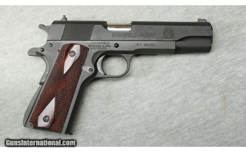 Description: Springfield 1911-A1 chambered in .45 ACP. Features a G.I. spur hammer and arched mainspring housing. This 1911 looks like a WWII-era classic yet shoots like a modern one. Three-dot fixed steel sights keep it shooting straight, while a proven G.I.-style grip safety and perfect grip-to-frame angle make it comfortable, safe and effective. The forged carbon steel frame and slide are matte finished. It has a 5-inch service-length stainless steel barrel and Cocobolo Grips. .45 ACP SOLD Metal Condition: Excellent Wood Condition: Excellent Bore Condition: Bright Barrels: 5 Inches Triggers: Factory Weight: 2 lbs 6 oz Sights: 3 dot Item Location: La Vista, NE |