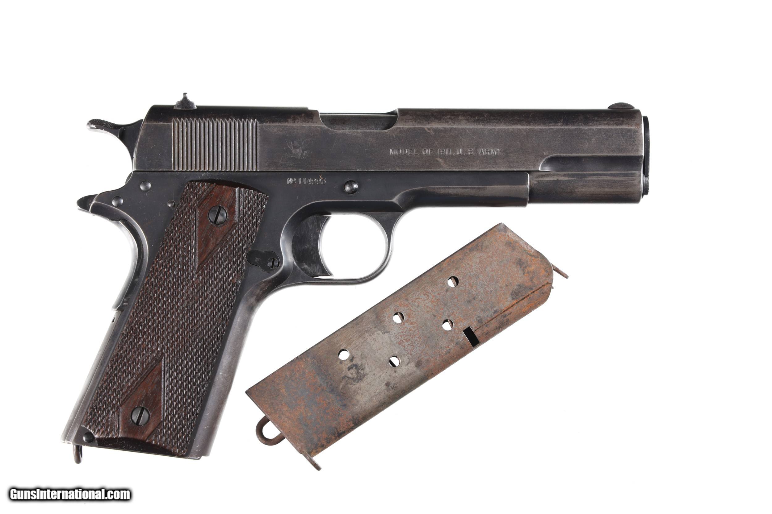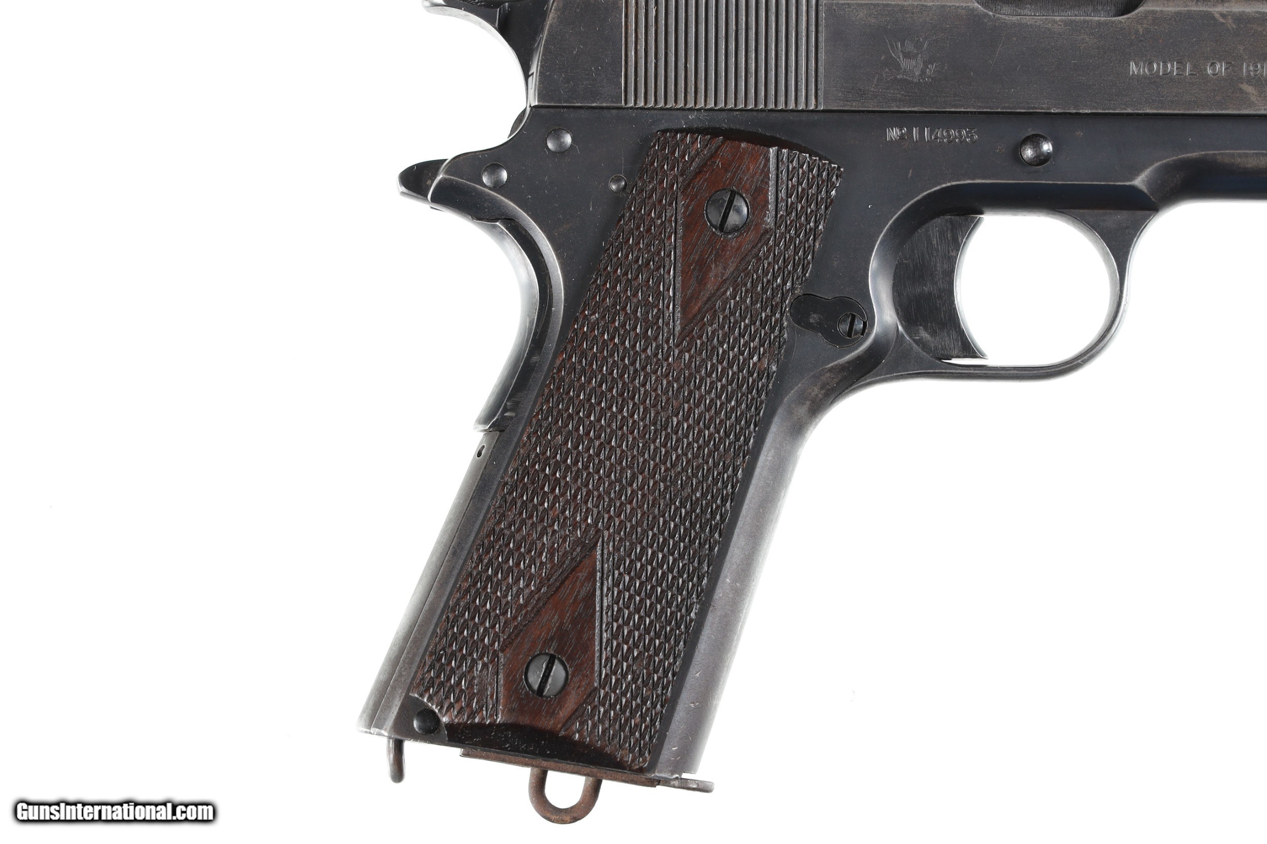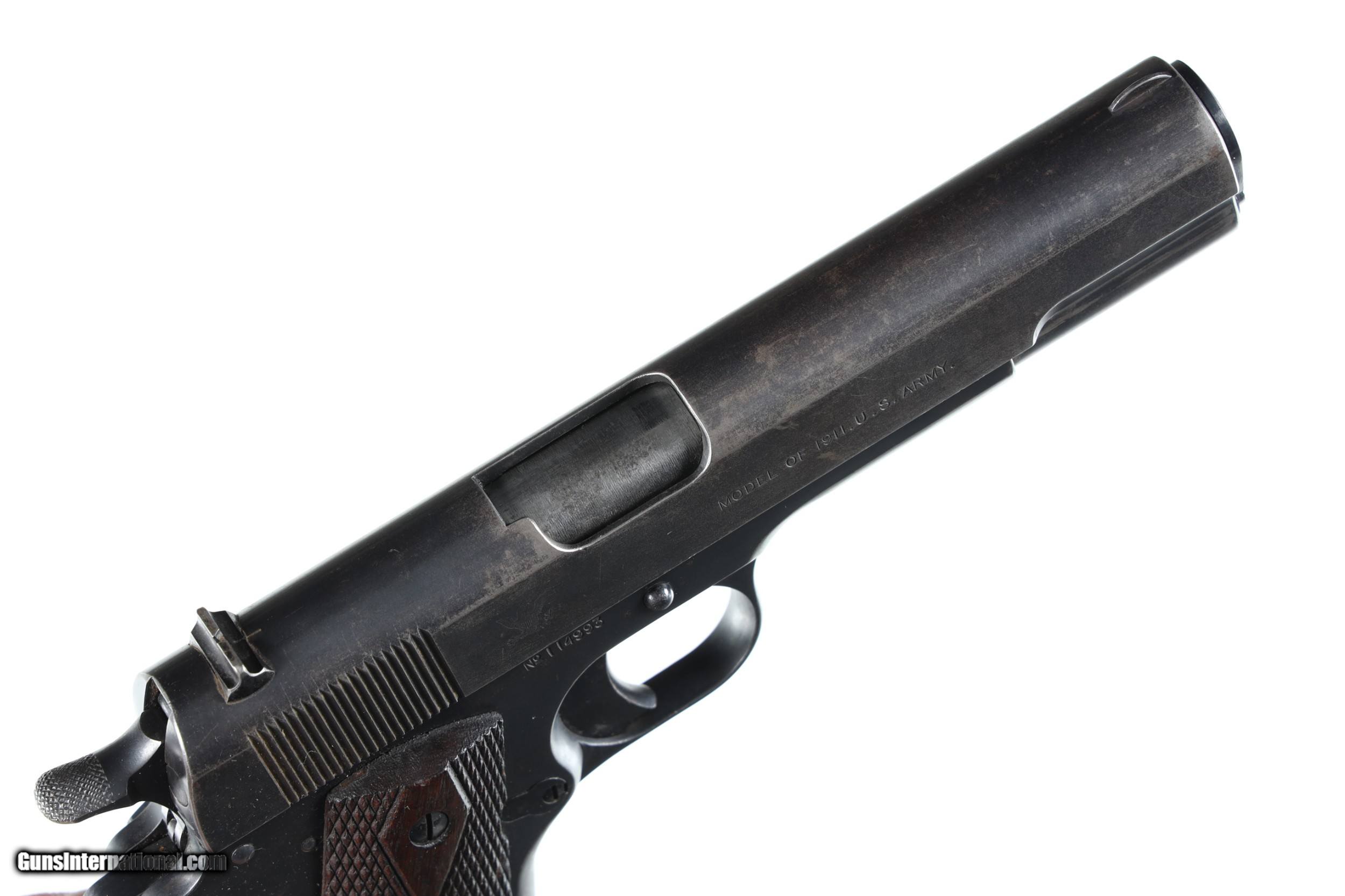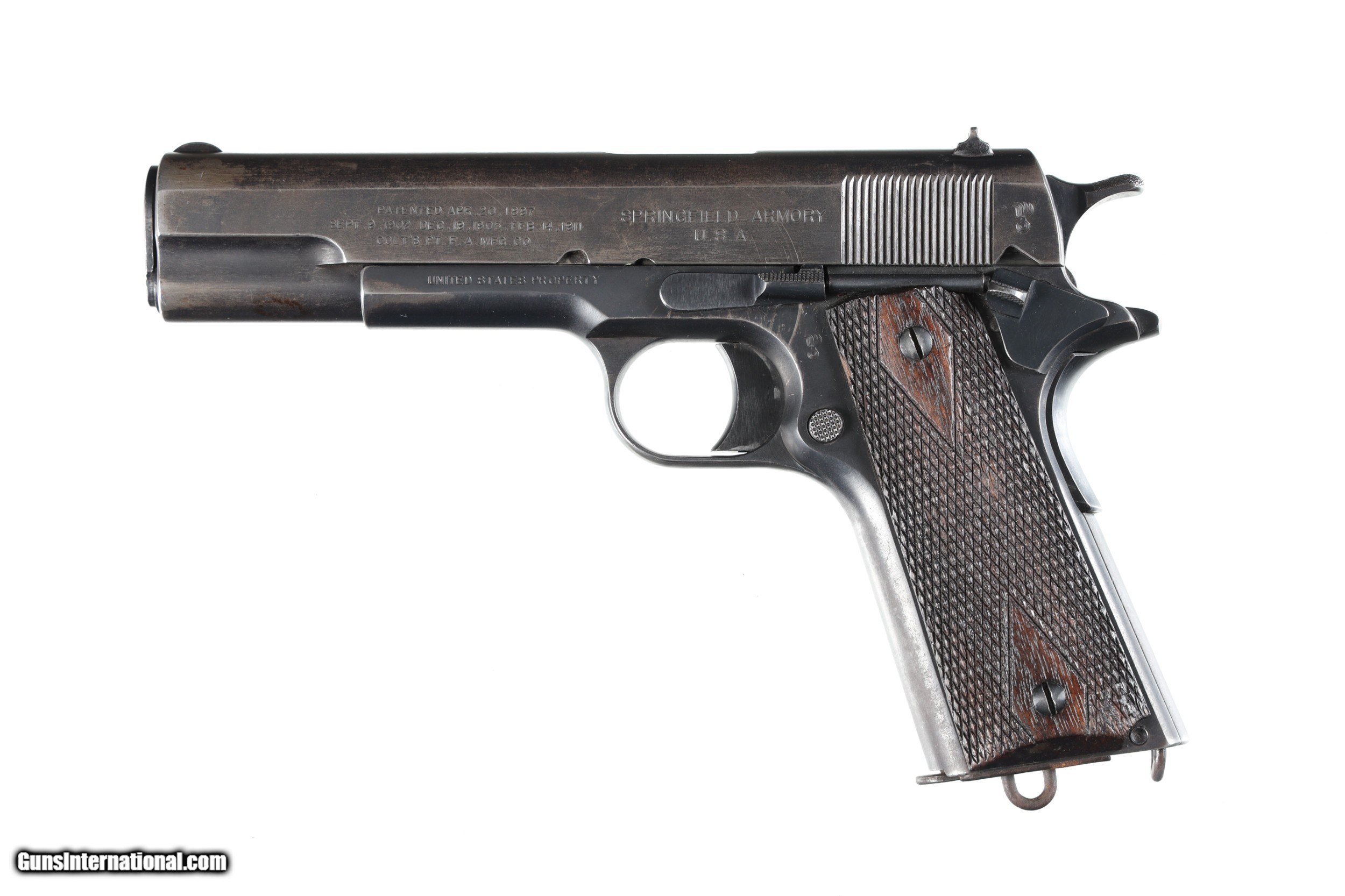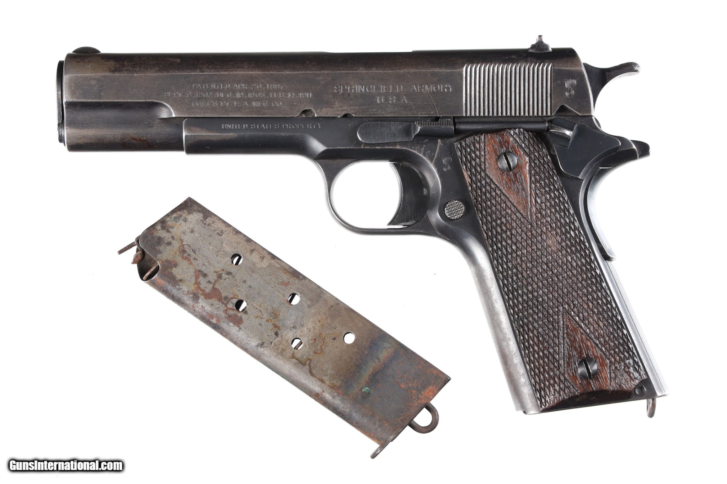 Description: Very good overall condition, fading original finishes. Manufactured 1915. Correctly marked Barrel with S and P on left lug. Firing pin retainer marked S. Correct Stocks and early type magazine. Unable to see marking on barrel bushing, spoke with another collector he says he’s never seen one marked. However, Clawson’s book lists barrel bushing as marked. Safety appears to be correct type from Clawson’s book. I have not broken the 1911 down to all parts. I’m not comfortable with hammer and punch. The gun feels and looks all matching in patina and appearance. Grips had the never been taken off feel as I only removed the left grip. • Free Shipping, No Credit Card Fees. • Lay-a-way available for this firearm. • 1/3 Down, a 1/3 in 30 Days 1/3 in 60 Days. SOLD Manufacturer: Springfield Model: 1911 Serial Number: 114993 Barrel Length: 5 |
