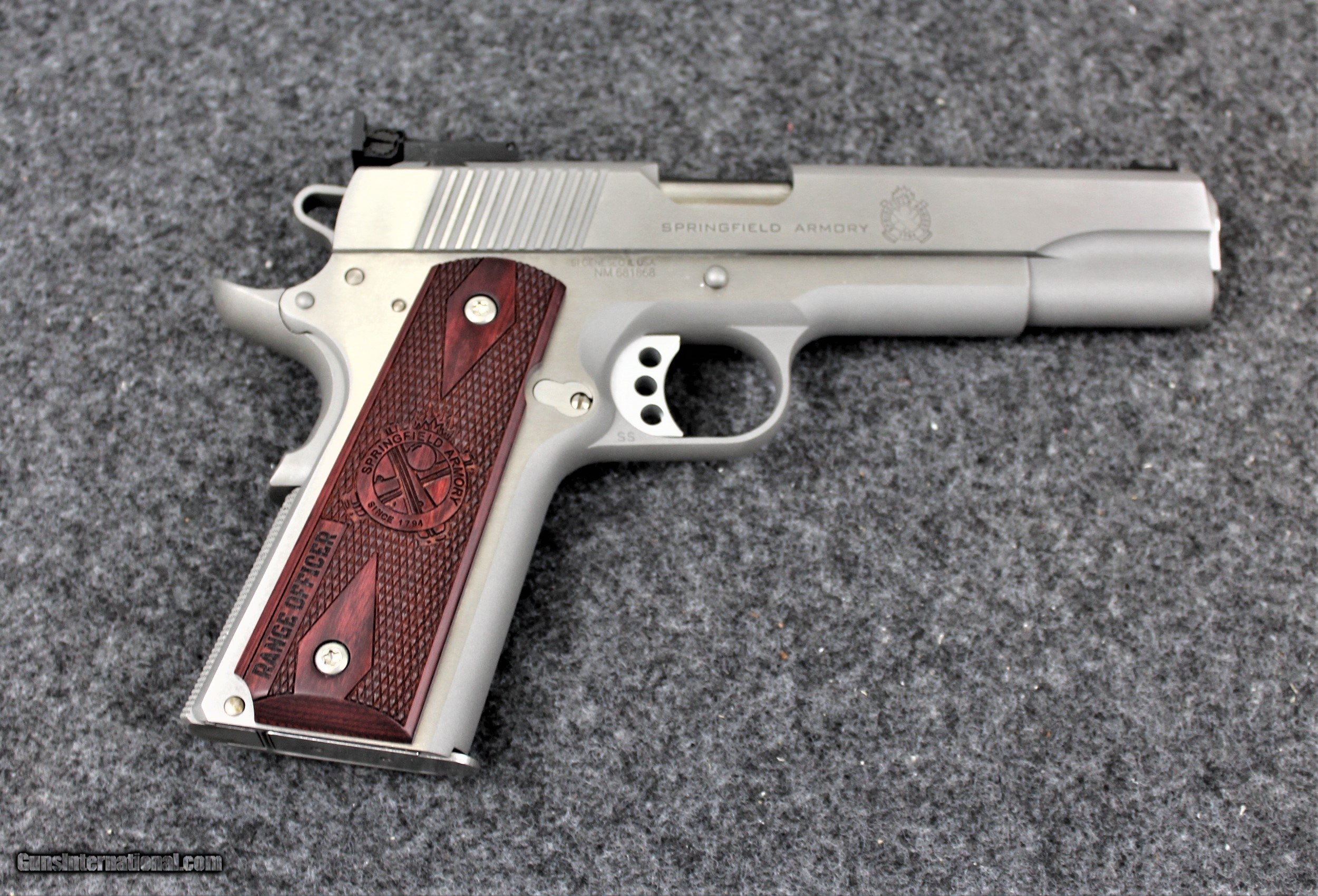 Description: Presenting a New In The Box Springfield 1911 Ranger Officer model in caliber 45 ACP. The firearm comes with the factory box and paperwork. SOLD Handgun Caliber: .45 ACP (.45 Auto) Manufacturer: Springfield Armory Model: 1911 Range Officer Serial Number: NM681868 Barrel Length: 5 Inch barrel Condition: Excellent Metal Condition: Excellent Wood Condition: Excellent Bore Condition: Excellent Action: Semi-Auto Triggers: Single Stock: Hardwood Pistol Grip Finish: Stainless Item Location: H & H Shooting Sports |