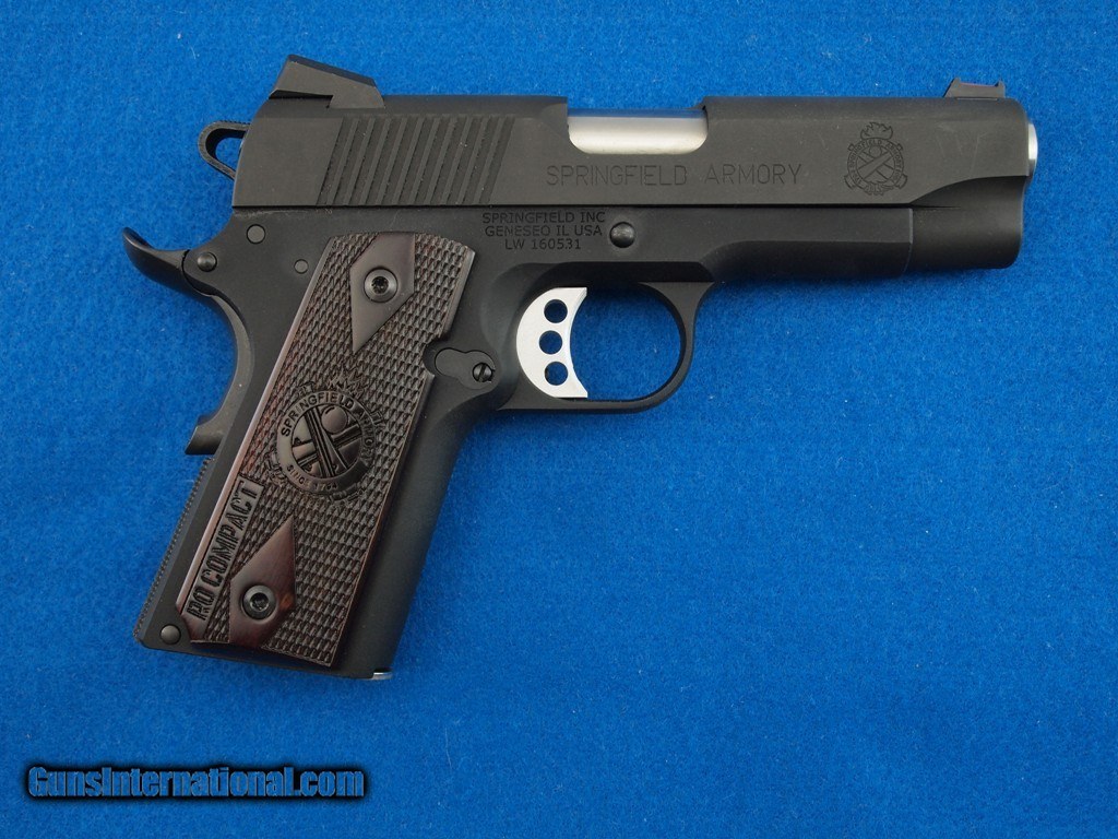 Description: Springfield 1911A1 RO Compact 9X19 NIB, 4" Stainless Steel match grade bull bbl, black finish, low profile fiber optic front sight, low profile combat rear sight, black anodized finish, serrated skeletonized trigger - hammer, Thinline Cross Cannon™ Double Diamond Cocobolo grips, and two 9 round magazines. Add 3% for Credit Card Shipping $25.00 SOLD |