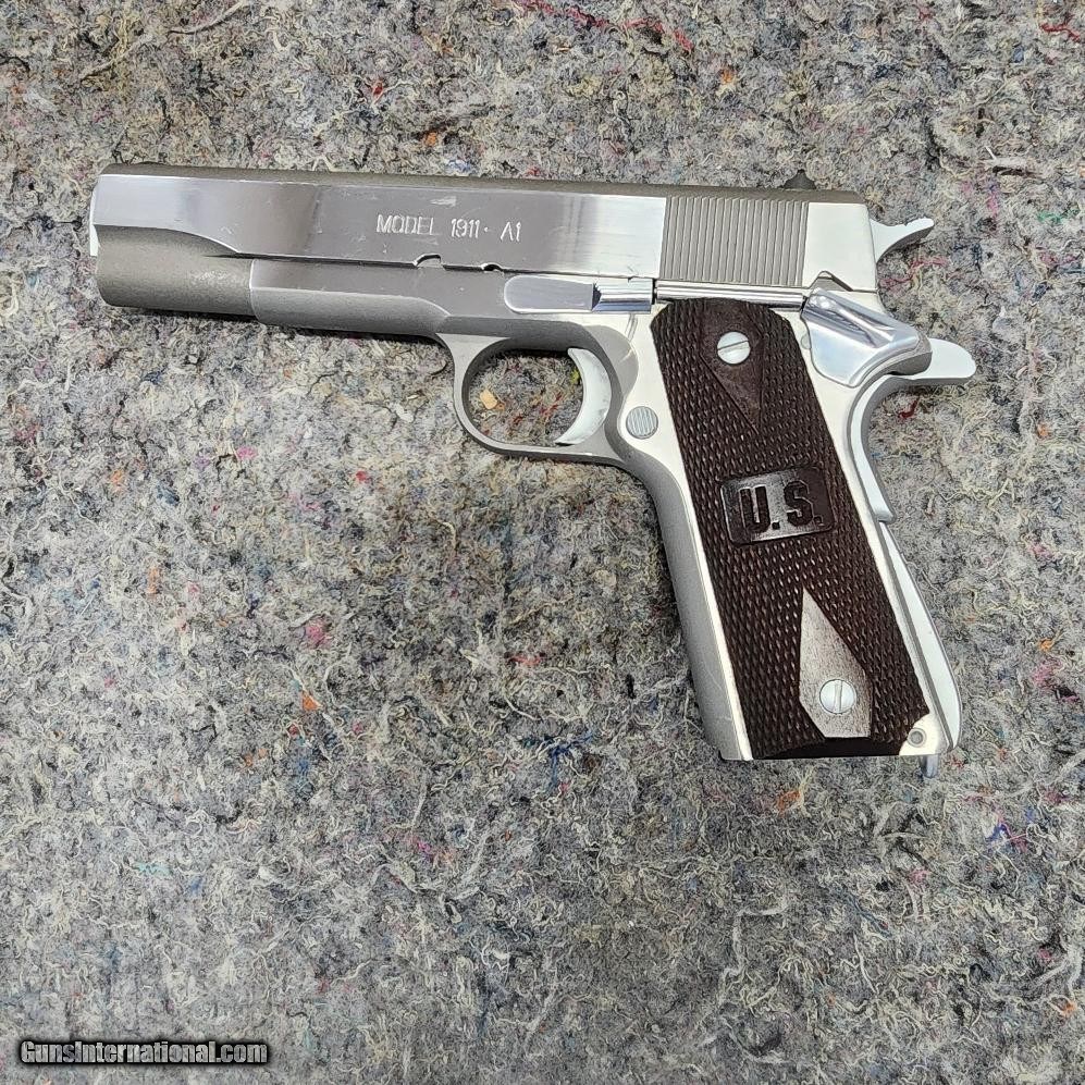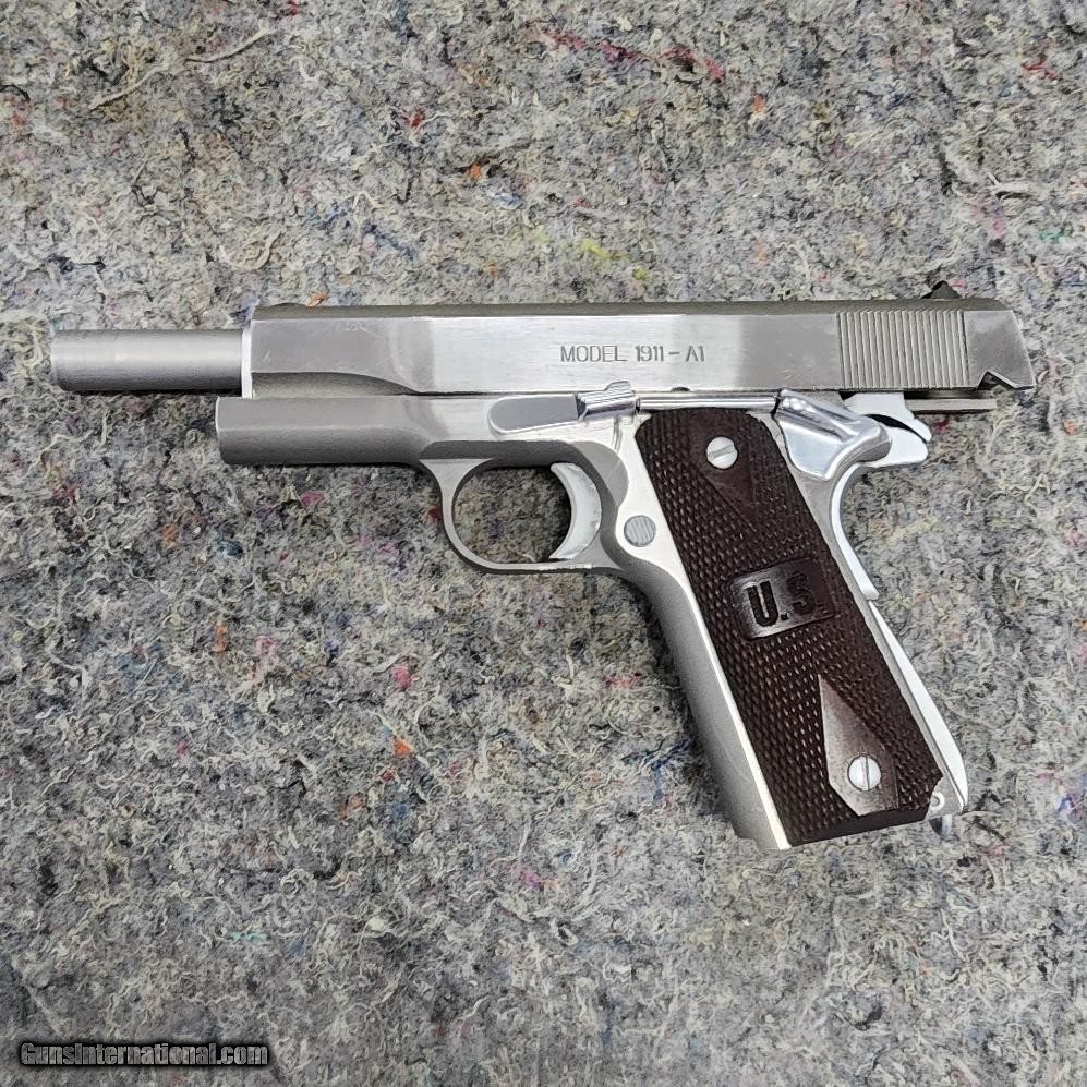 Description: Guns Listing ID: 585964 WE ARE SELLING THIS STAINLESS STEEL SPRINGFIELD 1911-A1. IT IS CHAMBERED IN .45ACP. THE BARREL IS 5.5\". THE GRIPS ARE WOOD. THERE IS NO MAGAZINE. THE SLIDE AND FRAME HAVE SCRATCHING, Manufacturer: SPRINGFIELD ARMORY Model: 1911-A1 Caliber Info: 45 ACP (45 Auto) Condition: Used - Non-Certified Barrels: 5.5" BARREL Action: SEMI AUTOMATIC Finish: Stainless Price: $599.99 Contact Seller |