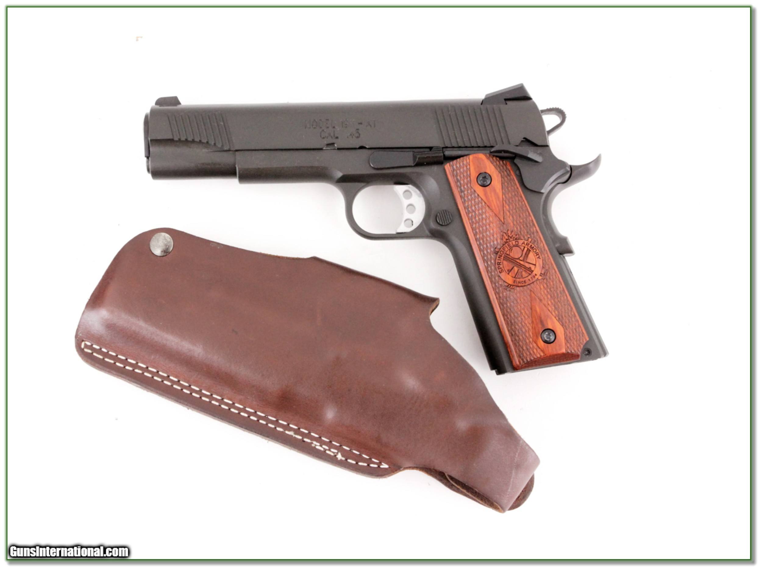 Description: This is a like new Springfield 1911-A1 in 45 ACP. It comes as seen in original case, 2 magazines all papers and accessories. It includes 2nd set of grips and leather holster. I am sure only a few rounds fired. I am selling this one on consignment and as such lay-a-way can’t be used. It does of course have the standard 3-day inspection. Shipping with insurance is $39. Please email me with any questions or larger pictures. (Consign your quality firearms with Shooting Investments for only 12%! Let me know if you have any you would like to sell!) 18-1098 Payment: Payment is by Money Order, Cashiers Check or Personal Check. I can now also accept MasterCard and Visa with a 3% convenience fee. PayPal can be used for some items but never firearms. Please let us know if you would like to pay via PayPal. Shipping: The shipping charge will be listed in each description. It is $39 for most long guns and $29 for most handguns. Some heavy guns or those insured for over $2000 will be higher. Shipments to Alaska and Hawaii are higher because air shipment is required. Most firearms are shipped on Tuesday and Thursday and usually in 5 days of receipt of payment. We package all shipments carefully and insure them. For long guns you can purchase a new Plano case for $19. They now cost us $22 when buying 100 at a time. Optics are shipped Priority Mail and most other non-firearm shipments are shipped First Class. Returns: Our return policy is simple. If for any reason you are not pleased with your purchase, you may return your item for a full refund of purchase price. Ammunition cannot be returned. It is important to us that you are happy. Guns cannot be fired or dissembled before returning them and they must be returned in the same condition as received. Notification of a return must occur with-in 3 days of receipt at your dealer. Shipping, convenience and dealer fees are not refundable and are the responsibility of the buyer. Lay-a-way: If needed, we offer a 60 day lay-a-way option on most firearms. It is 1/3 now, 1/3 in 30 days and 1/3 in 60 days. Lay-a-way firearm sales are final and if not completed the first payment cannot be returned. Consigning your firearms with Shooting Investments: We will help you get top dollar for your firearms. While most local guns shops charge 20% or more, our fee is only 12% with a minimum of $75. At your local gun shop it might take months to sell. Selling on-line provides instant access to thousands of interested buyers. You won’t find any other on-line dealer willing to sell your firearms for only 12% or listing every gun on 3 separate s. Selling through an House typically costs the seller 15% and the buyer an addition 15% (so 30%) and you have to wait several months to sell and longer to receive funds. If properly priced, we will sell your firearms in a few weeks. Send us an email or give us a call and we’ll explain how easy it is for you to get top dollar. Trading: Trading for use is really just buying your gun to re-sell. If you have a gun you want to trade, please email a picture and we will let you know what we can give or it. You will always get more if we sell it for you on consignment. Help for California Buyers: We are happy to ship to California. It is the buyer’s responsibility to make sure any item you buy is legal in your state. We are also happy to help with your purchase of a firearm from someone other than us. If you see a gun you would like to buy but the seller can’t or won’t ship to California they can ship to use and we’ll then ship it to your California dealer. The cost for this service is only $30 + shipping. Let us know if we can help! SOLD |