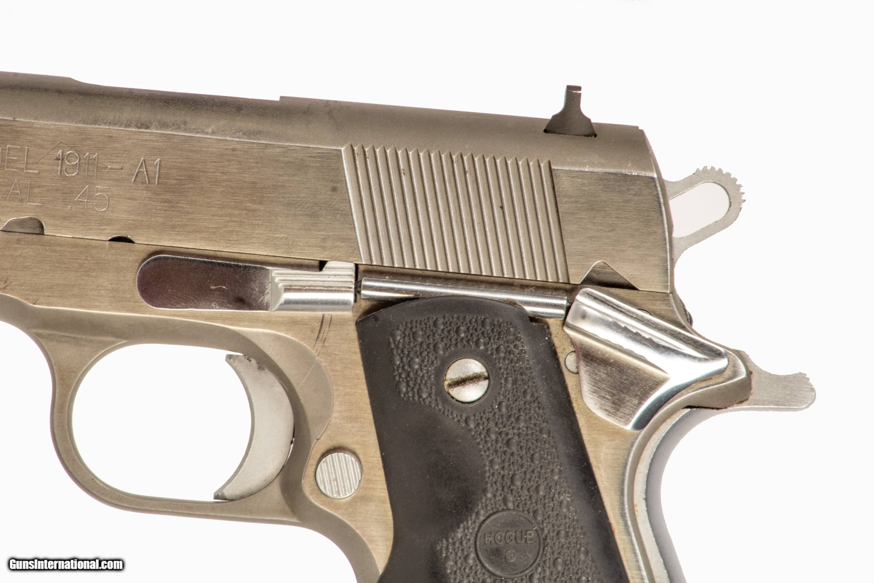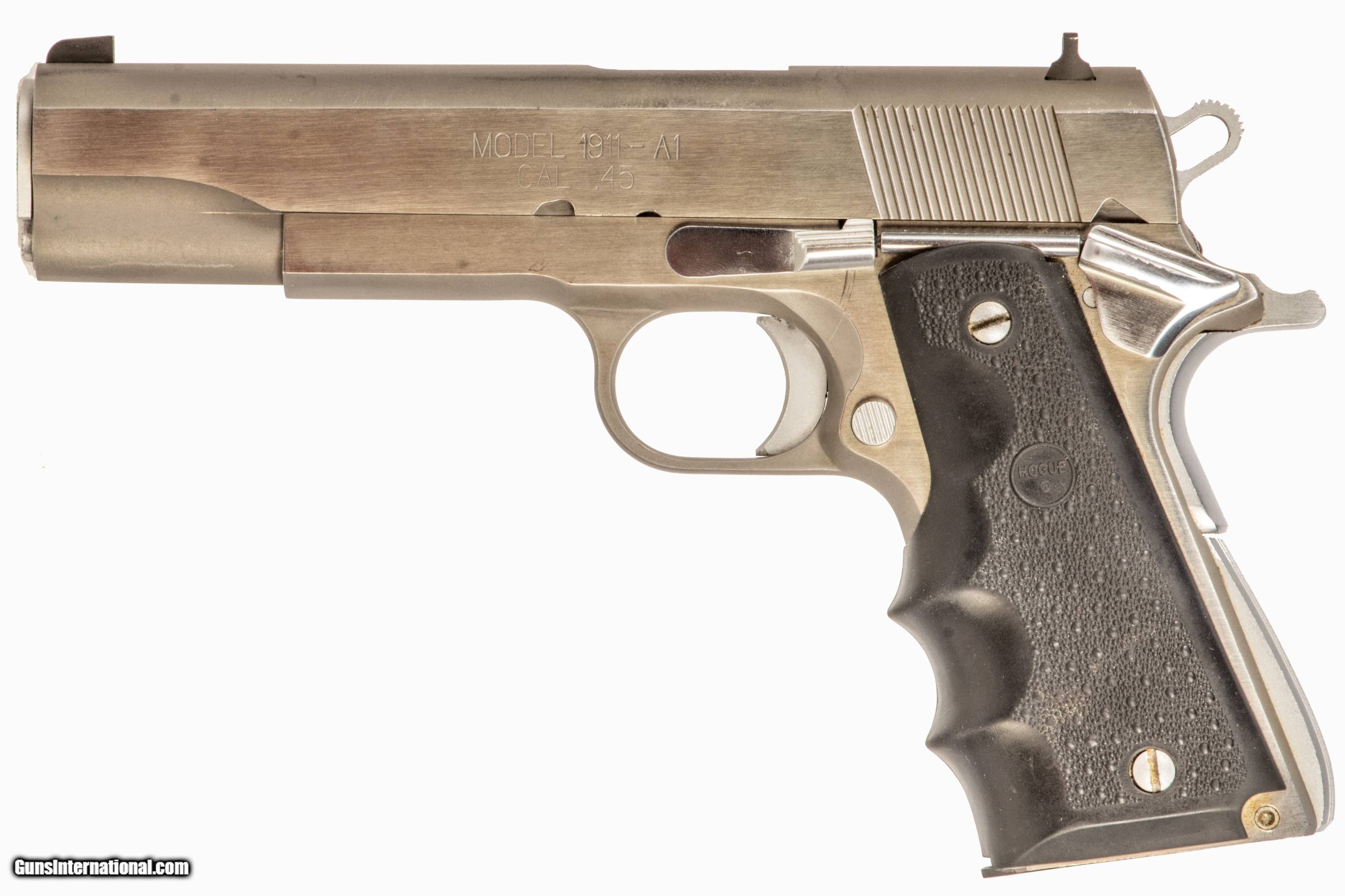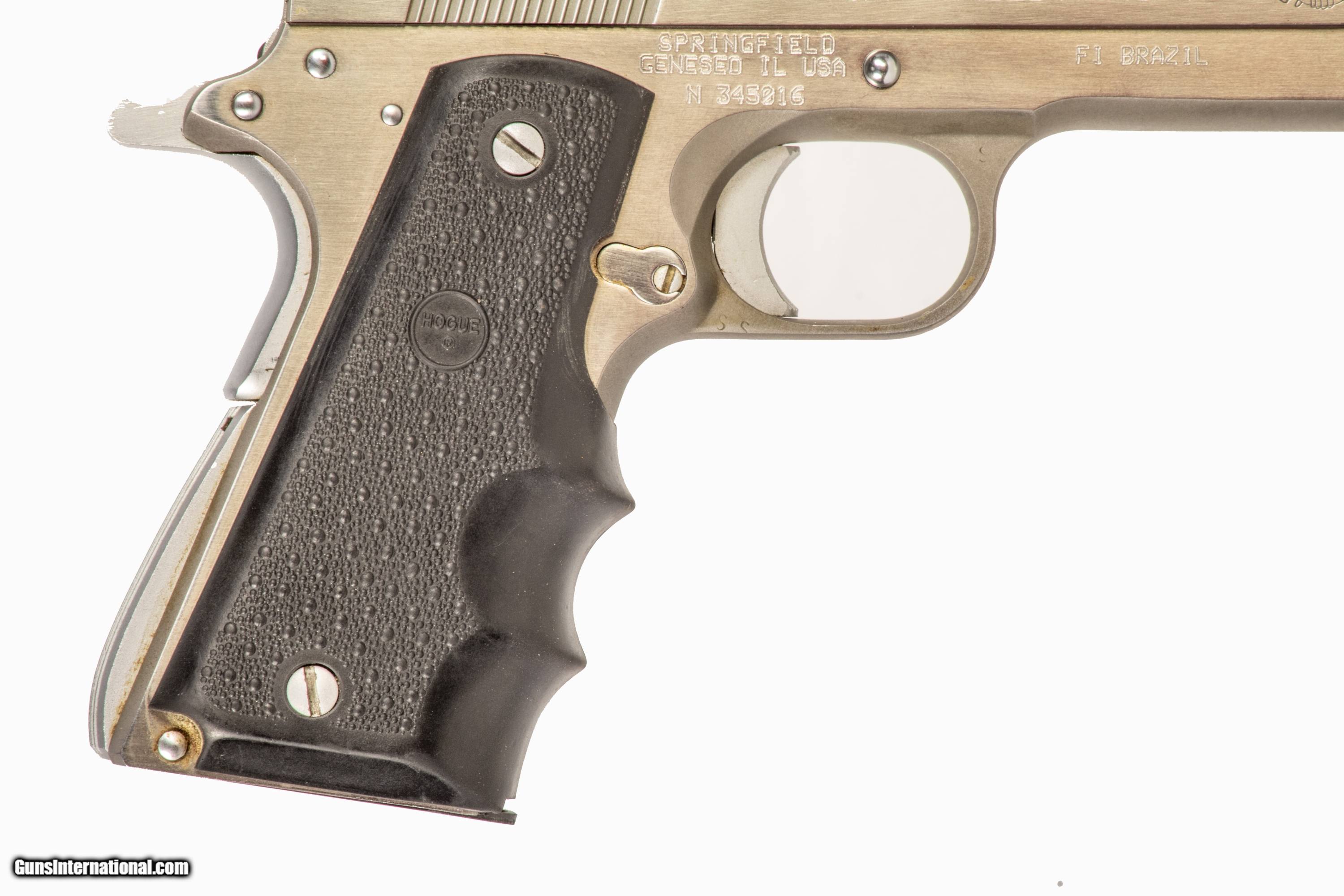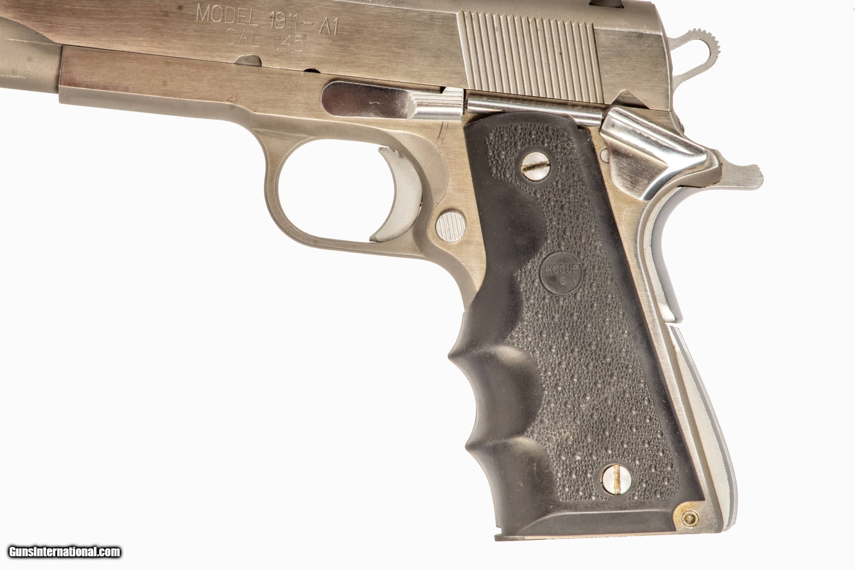 Springfield Armory 1911-A1 chambered in 45 ACP with a 5 inch barrel bright & shiny bore and Hogue aftermarket grips. This is a used firearm that is in very good condition and is covered by Dury's Lifetime Warranty.