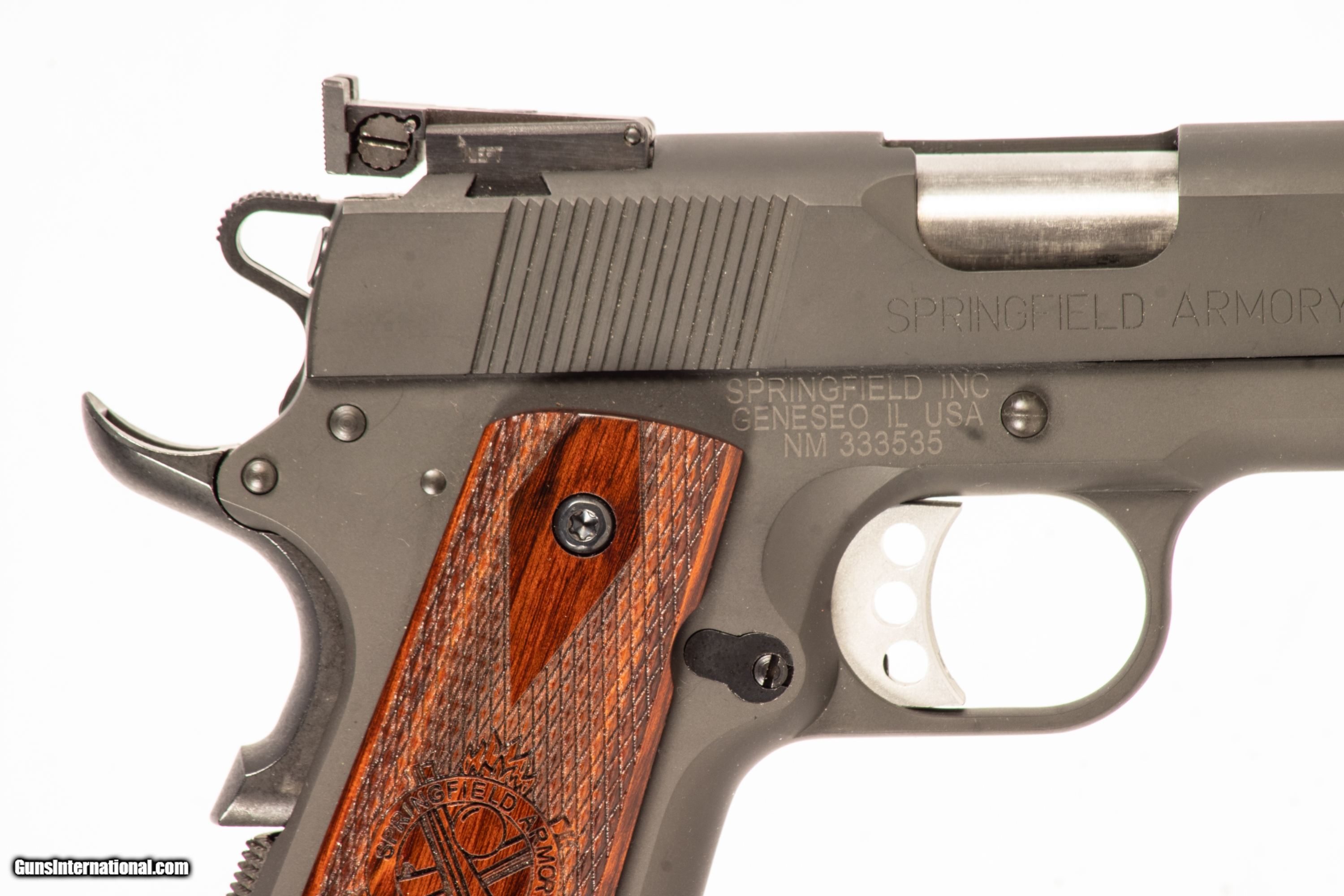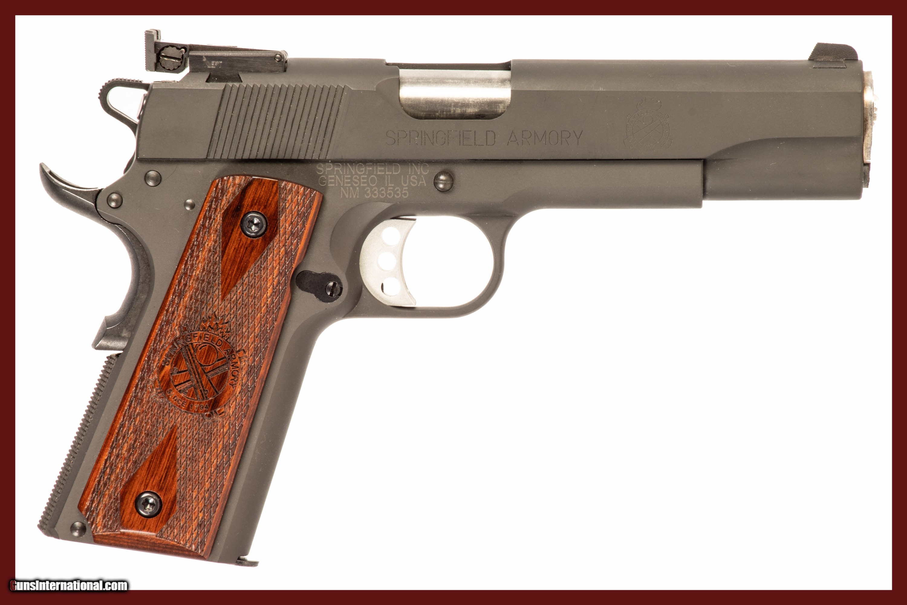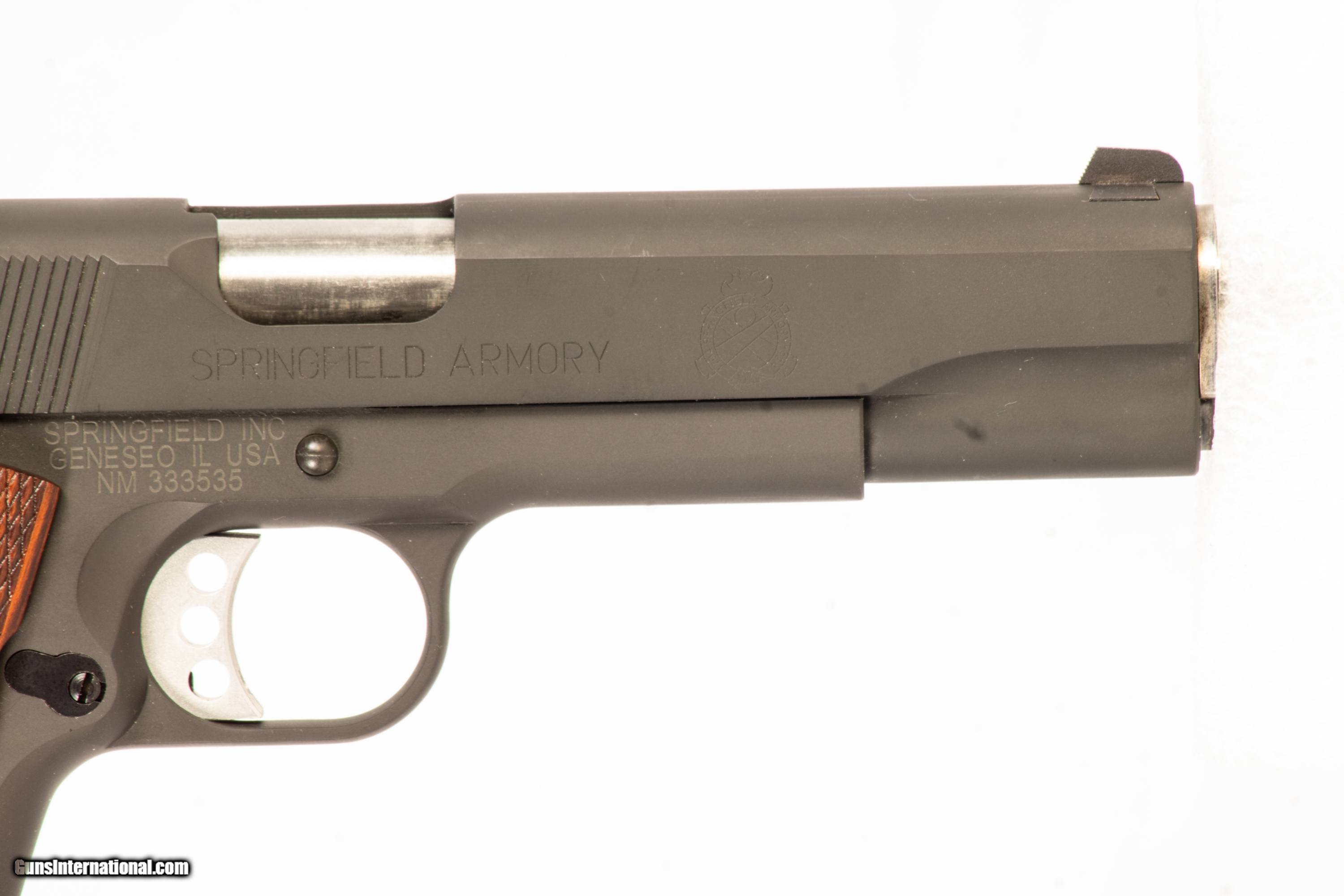 Springfield Armory 1911-A1 chambered in 45 ACP with a 5 inch barrel bright & shiny bore case holster magazine pouch and 1 extra magazine. This is a used firearm that is in excellent condition and is covered by Dury's Lifetime Warranty.