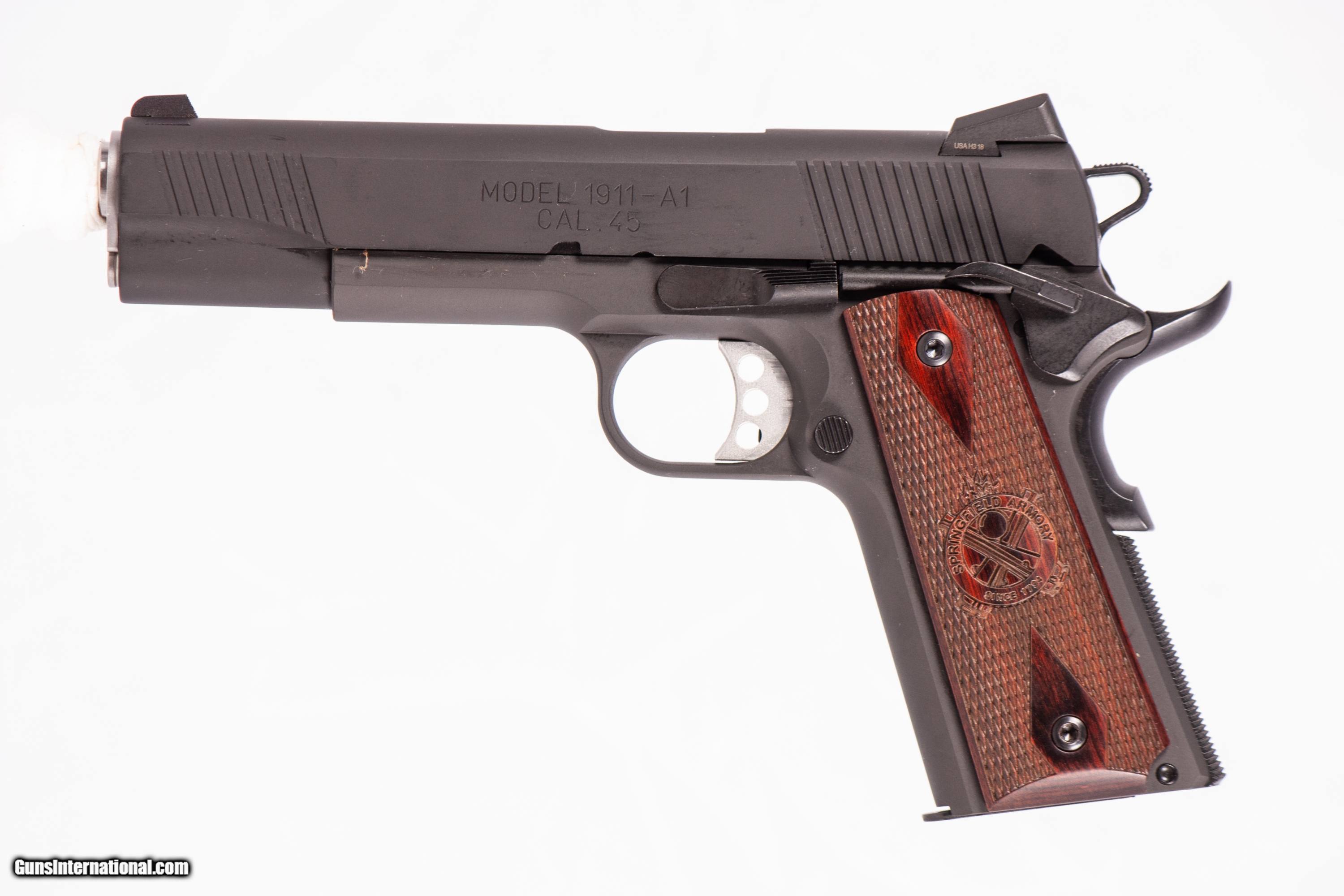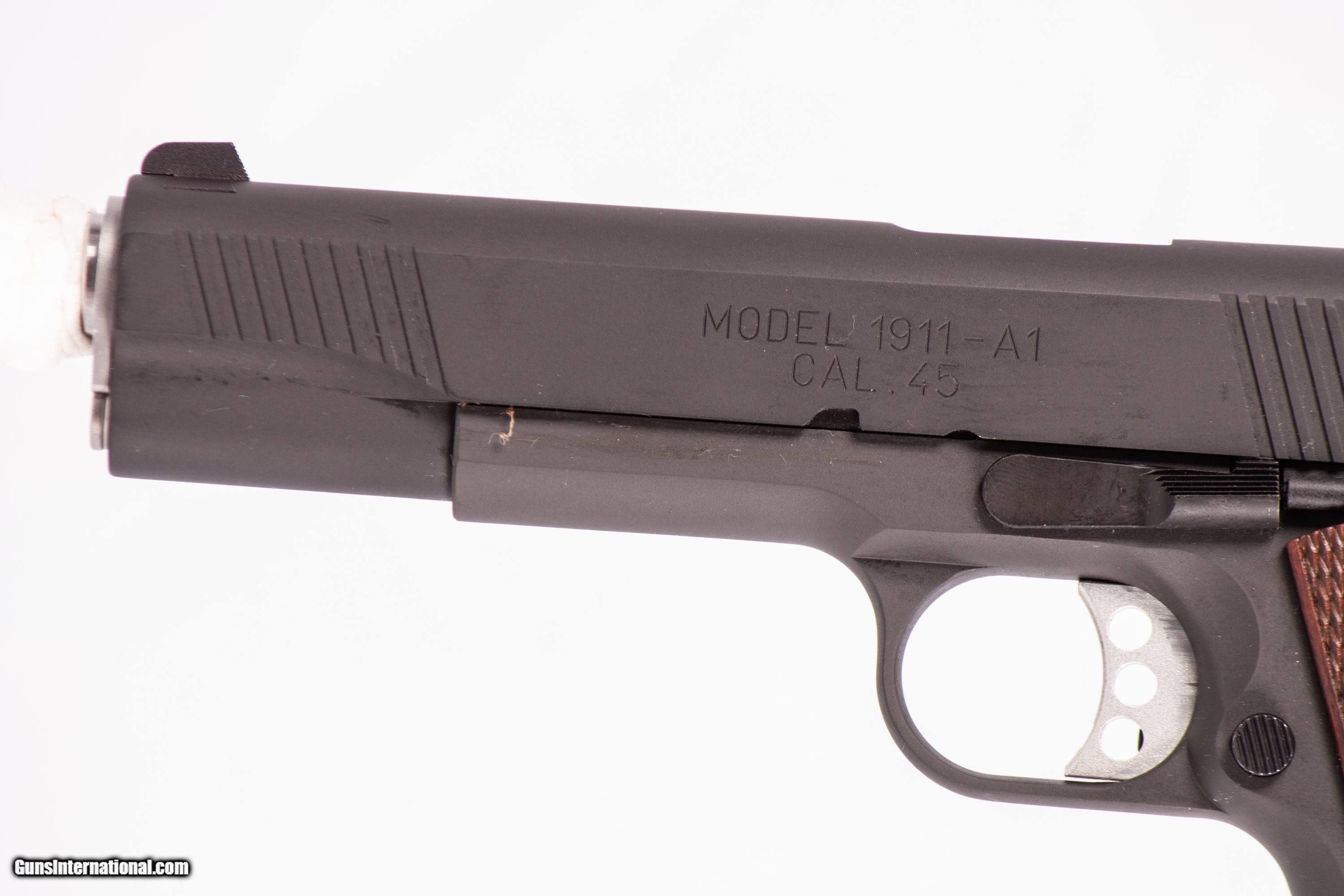 Springfield Armory 1911-A1 chambered for 45 ACP with a 5 inch barrel and a bright & shiny bore. This firearm is in excellent condition and is covered by Dury's Lifetime Warranty.