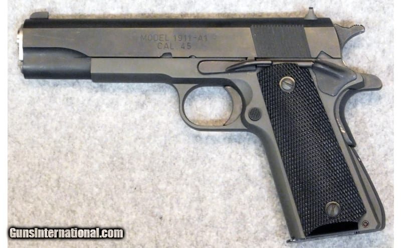 Description: Springfield Armory ~ 1911-A1 ~ Chambered in .45 Auto. Is a single action semi-auto hammer fire handgun with classic features and aesthetic. Features a parkerized slide and frame, finish is complimented with black polymer grips, and a 5" barrel paired with iron sights. Comes with factory hard case, four 7 + 1 capacity magazines, a single 15 + 1 capacity magazine, and a single 10 + 1 capacity magazine. .45 Auto SOLD Chambers: .45 Auto. Metal Condition: Very good condition. Bore Condition: Good condition. Triggers: 5.75 pounds. Weight: 2.5 pounds Sights: Iron sights. Item Location: Acworth, GA |