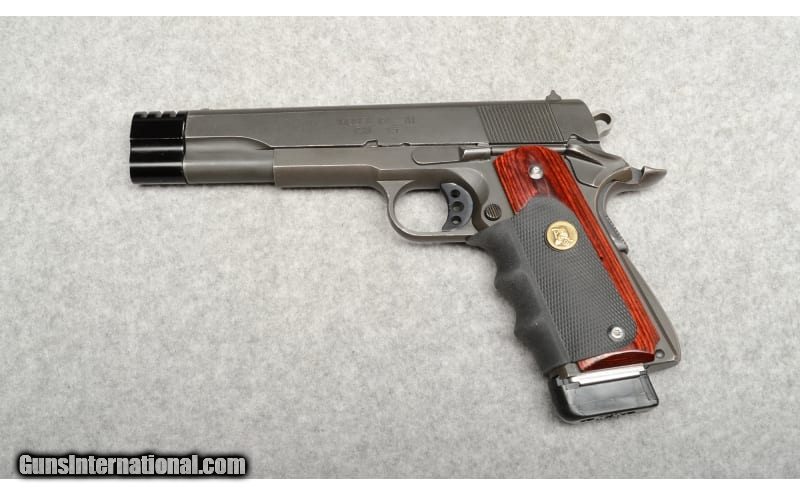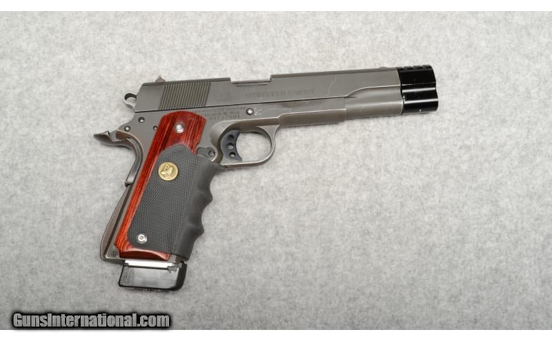 Description: Here we have the Springfield Armory 1911-A1 in .45 ACP. This handgun has beautiful rosewood and rubber grips, an aggressive compensator, and the classic look of the 1911. .45 Auto SOLD Metal Condition: Great Wood Condition: Excellent Bore Condition: Excellent Barrels: Factory 5 Triggers: Factory Fore End: Compensator Weight: 2 lbs Sights: Factory Item Location: Columbus, OH |