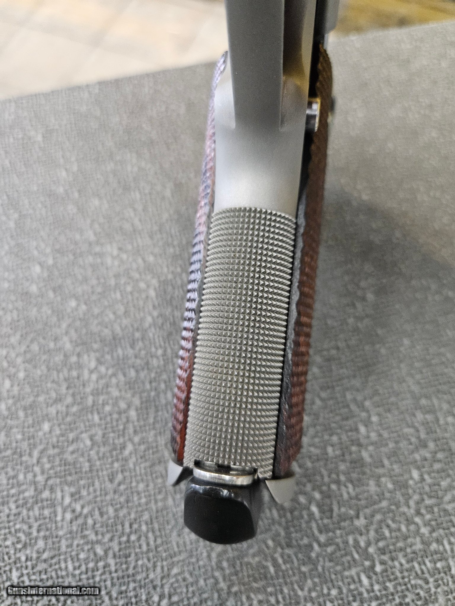 Description: Guns Listing ID: 578124 This 1911 Loaded Target pistol offers a soft-shooting 9mm personality along with the design’s timelessly effective chassis. An ambidextrous extended thumb safety and optimized slide with fore and aft charging grooves along with a lowered and flared ejection port make for fast operation and undeniable reliability. An extended beavertail keeps the gun comfortable and pleasant to shoot. Springfield Front Grip Stippling Extended Mag Well Housing Caliber 9mm Color Stainless Barrel 5\" Forged Stainless Steel, Match Grade, 1:16 Slide Forged Stainless Steel Frame Forged Stainless Steel Sights Fully Adjustable Target Recoil System 2 Piece N.M. Full Length Guide Rod Grips Crossed Cannons Cocobolo Magazines (5) 9-Round Weight 41 oz Length 8.6\" Height 5.7\ Manufacturer: SPRINGFIELD ARMORY Model: 1911-A1 Caliber Info: 9MM LUGER (9x19 PARA) Condition: Used - Non-Certified Barrels: 5" BARREL Action: SEMI AUTOMATIC Finish: stainless steel Price: $795.99 Contact Seller |