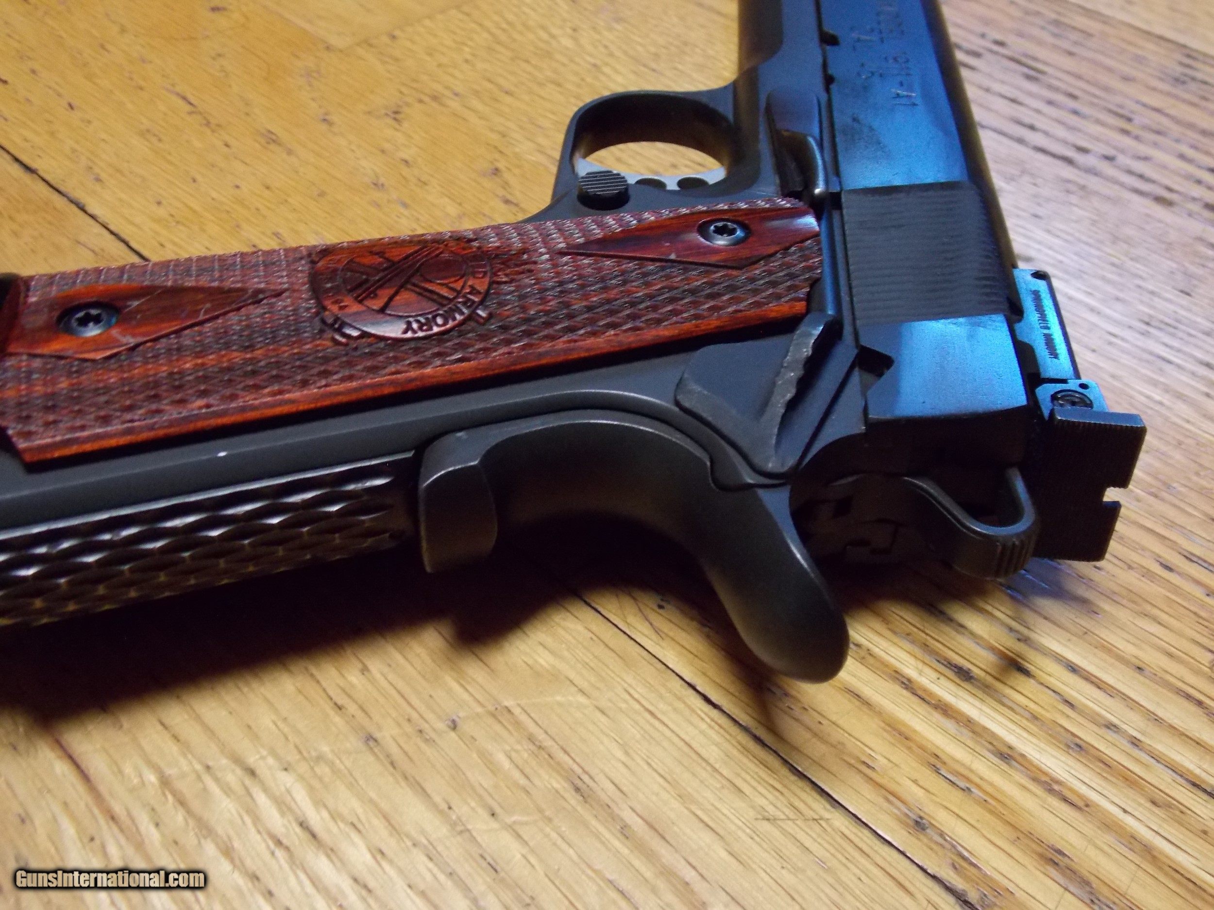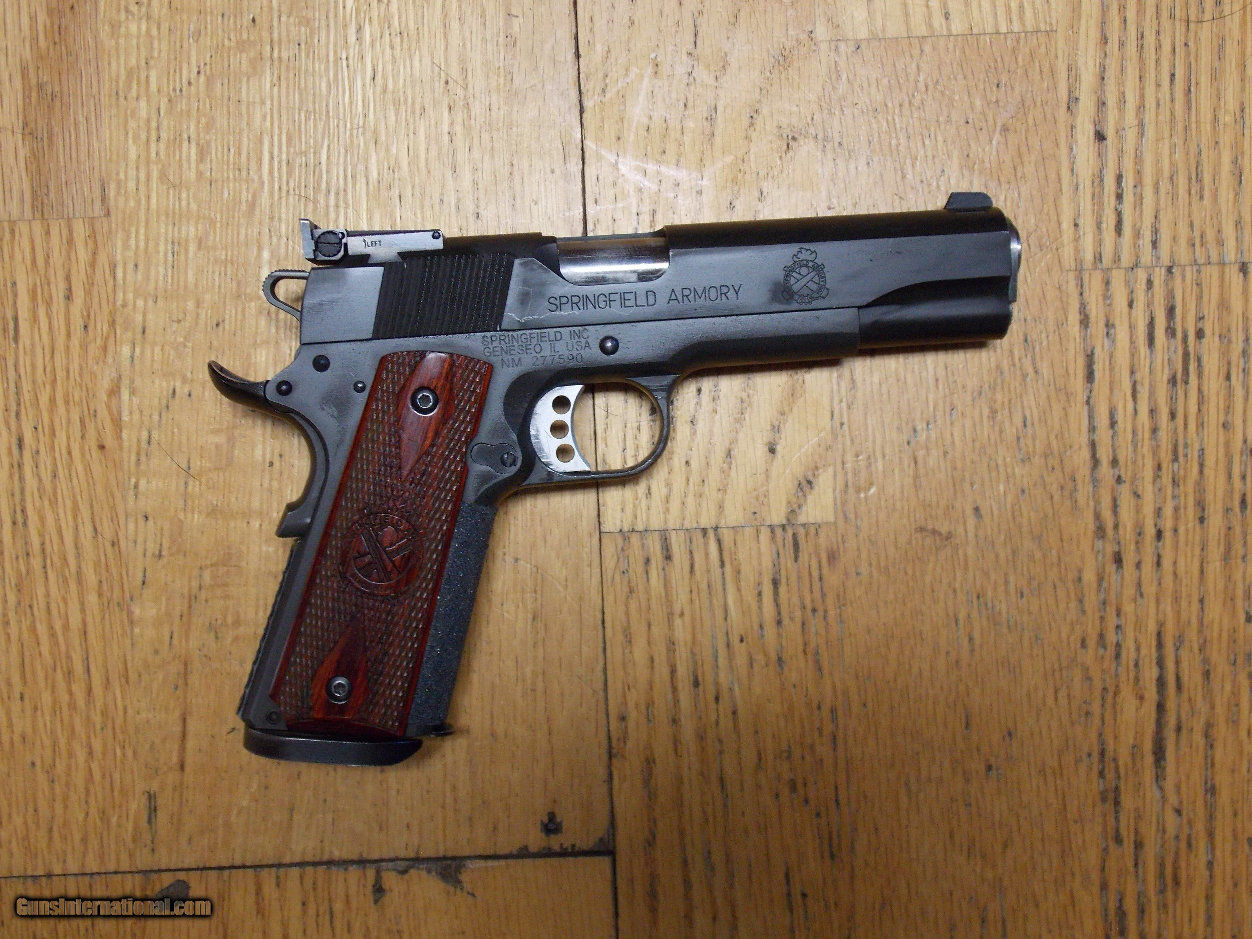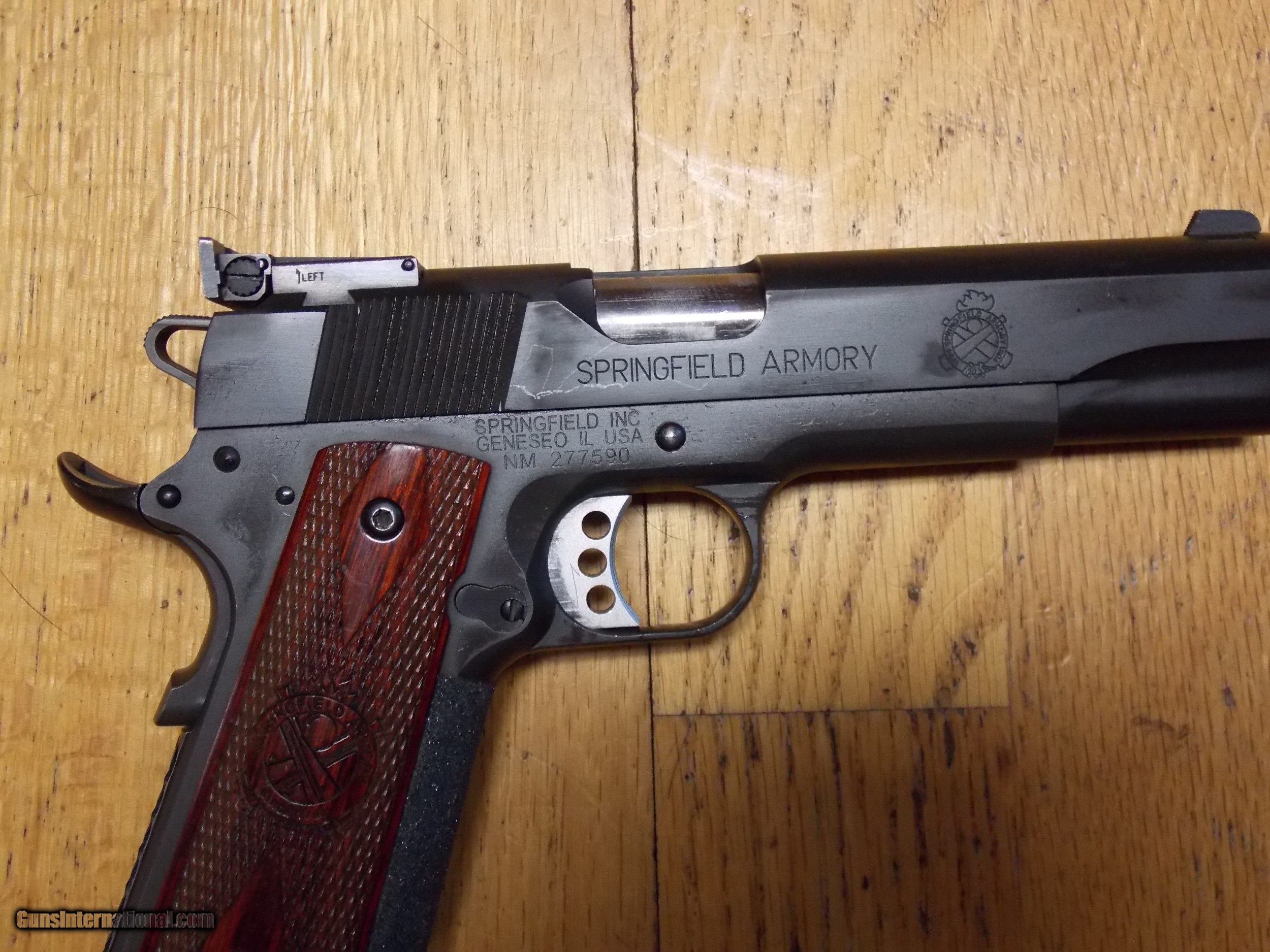 Description: Springfield Armory 1911-a1 45 acp pistol. Gun has had a lot of custom work including dropped and lowered ejection port, adjustable target sights, combat hammer, long trigger beavertail grip safety straight ejector rod housing, and target bushing. Good target trigger. Slide has light surface scratch just below ejection port, otherwise very good metal and wood. SOLD Model: 1911-a1 Caliber Info: 45 ACP Condition: good Triggers: target Sights: adjustable target |