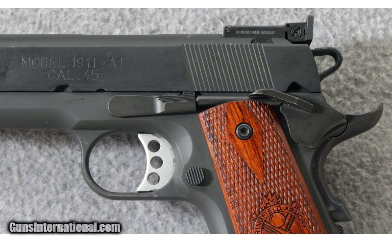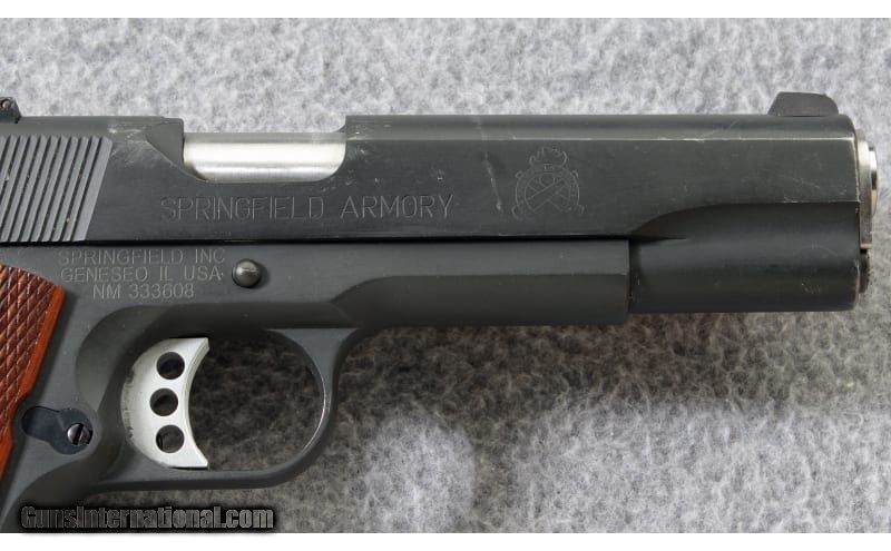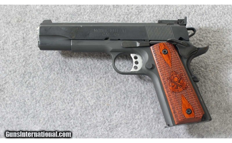 Description: he Springfield Armory® 1911 Range Officer® Semi-Auto Pistol is a full-size 1911, with additional upgrades and specialized features that set it apart from other 1911s in its price range. The Range Officer features a 5", match-grade, stainless steel barrel with a fully supported feed ramp. An aluminum, match-grade trigger and a fully adjustable, target rear sight with a dovetailed, serrated, semi-post front sight allows shooters to obtain the pistol's maximum accuracy potential. The main frame and slide are constructed of forged carbon steel, and feature a non-reflective, Parkerized finish. The pistol utilizes an extended beavertail grip safety with a pronounced memory bump to ensure positive engagement; and a flat, checkered mainspring housing and checkered, cocobolo grip panels provide a solid hold. An extended thumb safety is easily reached when time is of essence. .45 ACP SOLD Metal Condition: "Good with some finish wear on the slide, sharp edges and scratches Wood Condition: Excellent Bore Condition: Very good with signs of use Barrels: 5 inch barrel Triggers: Single action Weight: 40 Oz. Sights: Adjustable rear sight with blade front Item Location: Lehi, UT |