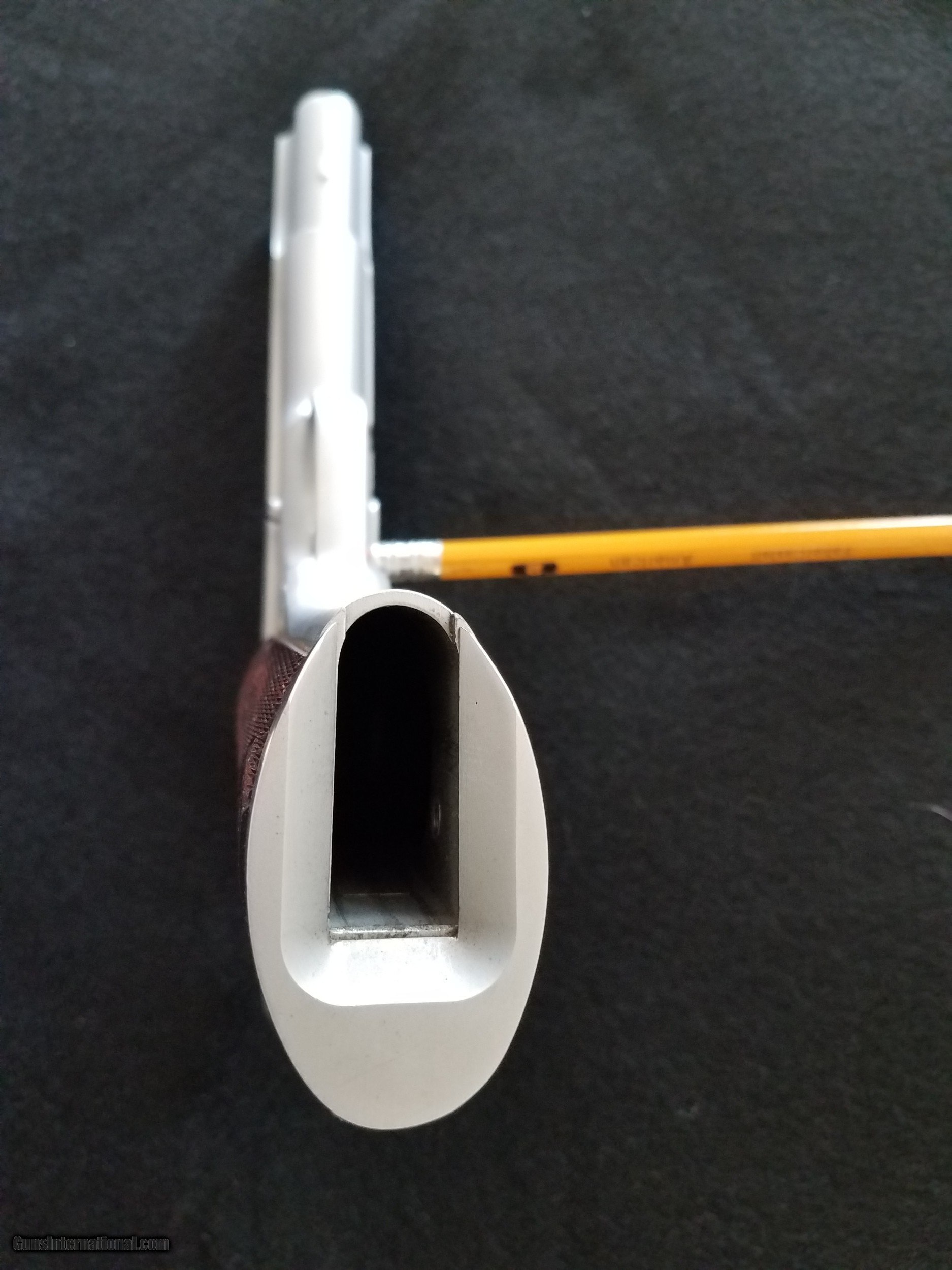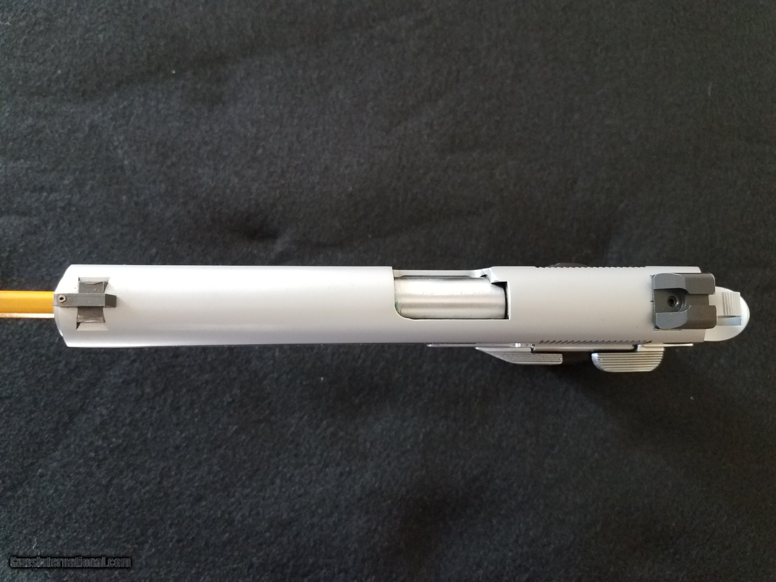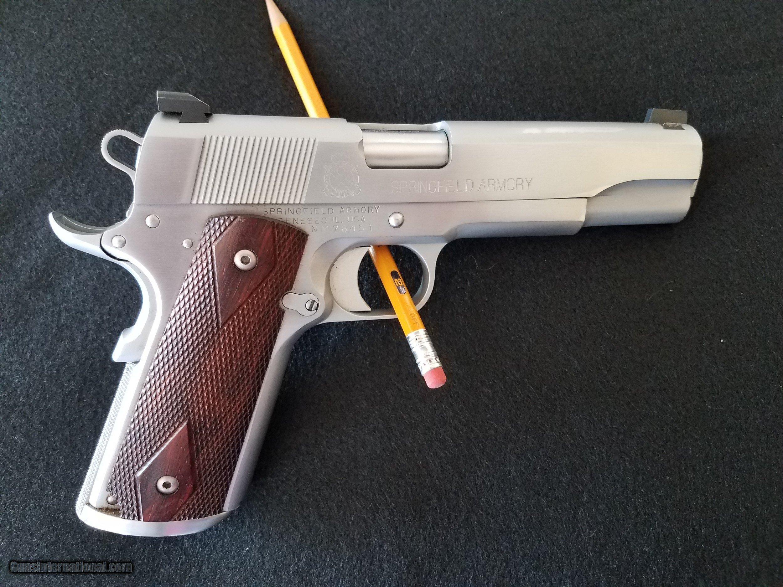 Description: SALE PENDING--Springfield Armory 1911-A1 .45 ACP. This pistol has a custom hard chrome finish, extended mag release, slide lock, and safety, target sights, along with skeletonized hammer, beveled mag-well, custom trigger, and full length guide rod. Also double diamond checkered wood grips. SOLD Manufacturer: Springfield Armory Model: 1911-A1 Serial Number: NM784xx Caliber Info: .45 ACP Bore: excellent Condition: Very good Metal Condition: Very Good Wood Condition: Very Good Bore Condition: Very Good Barrel Type: 5 Action: single Triggers: custom Finish: hard chrome Sights: target Item Location: GA |