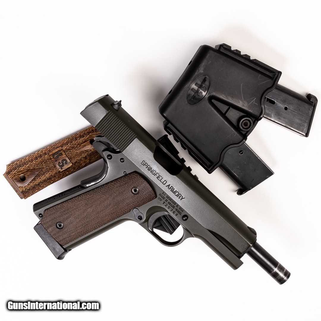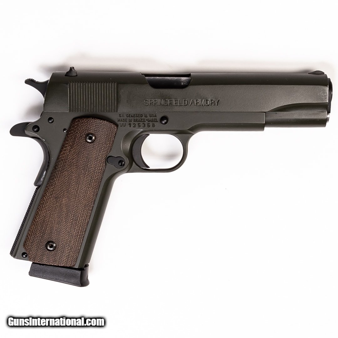 Description: Guns Listing ID: 403448 For sale is a Springfield Armory 1911-A1 with an OD Green finish. 3-7 round magazines, a right hand OWB holster, double mag holder, original US grips, G10 grips, and the original case are included. SOLD Manufacturer: SPRINGFIELD ARMORY Model: 1911- A1 Caliber Info: .45 ACP Condition: Used - Certified Barrels: 5 BARREL Finish: GREEN |
