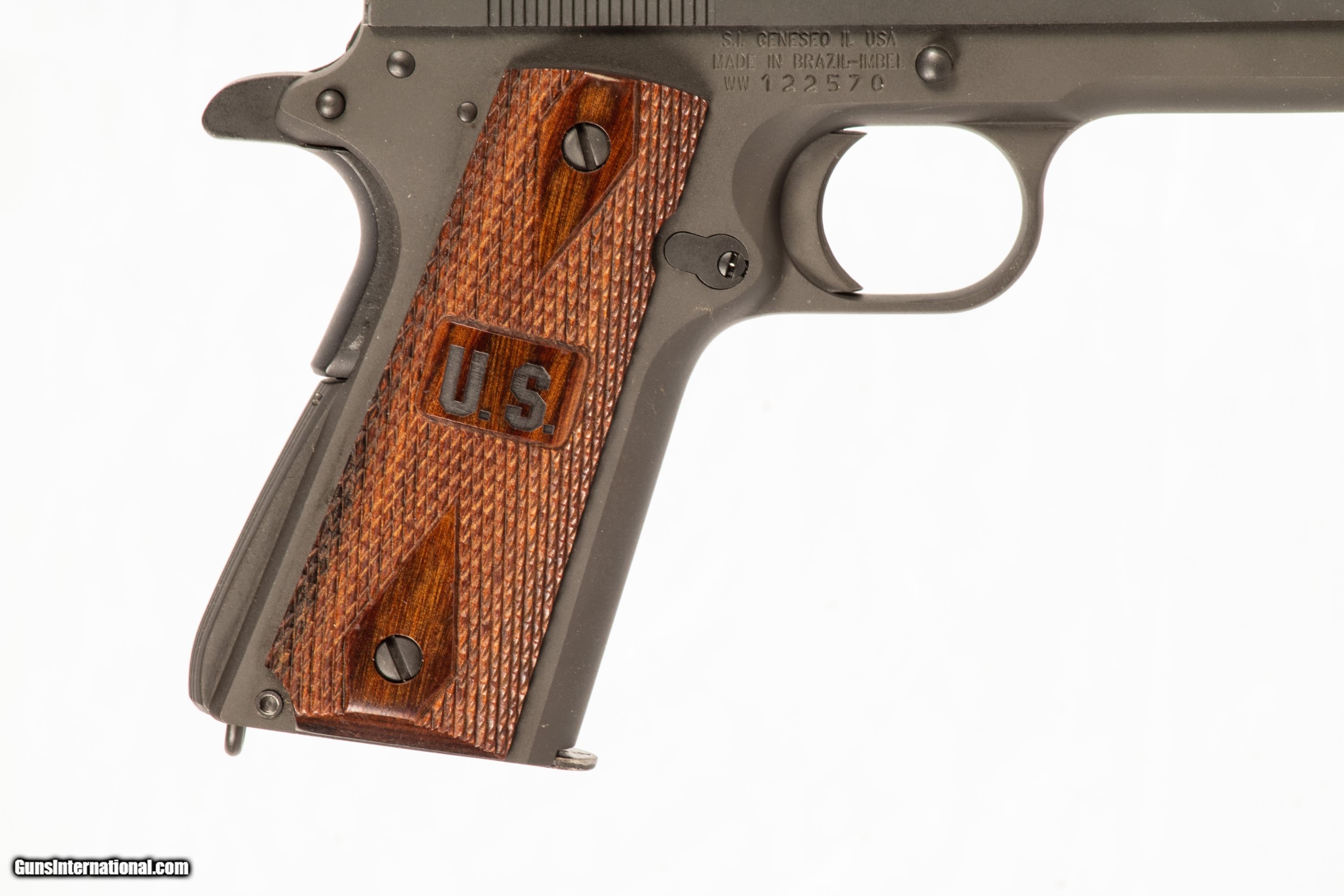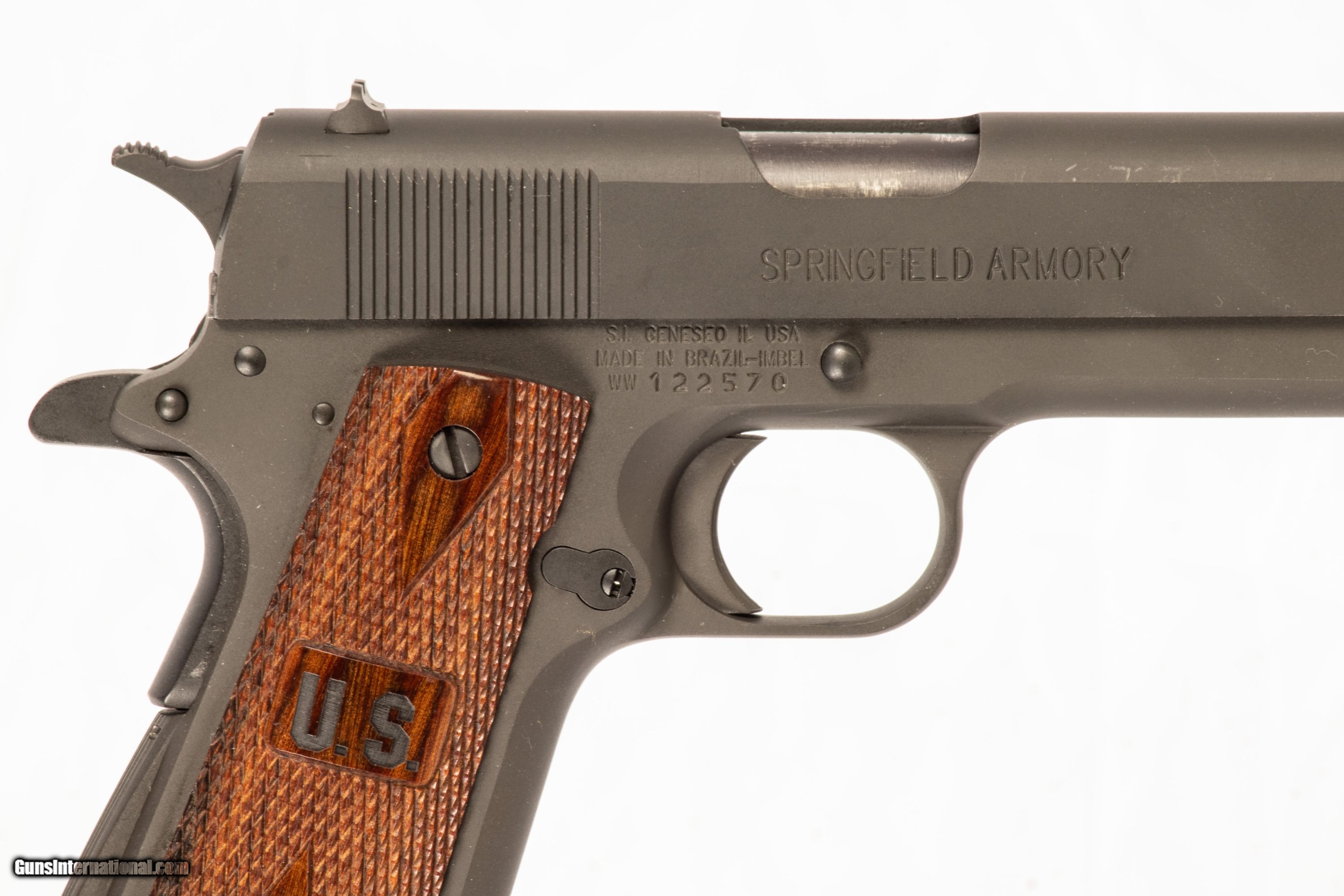 Springfield Armory 1911-A1 chambered in 45 ACP with a 5 inch barrel bright & shiny bore hard case holster and a mag pouch. This firearm is in excellent condition and is covered by Dury's Lifetime Warranty.