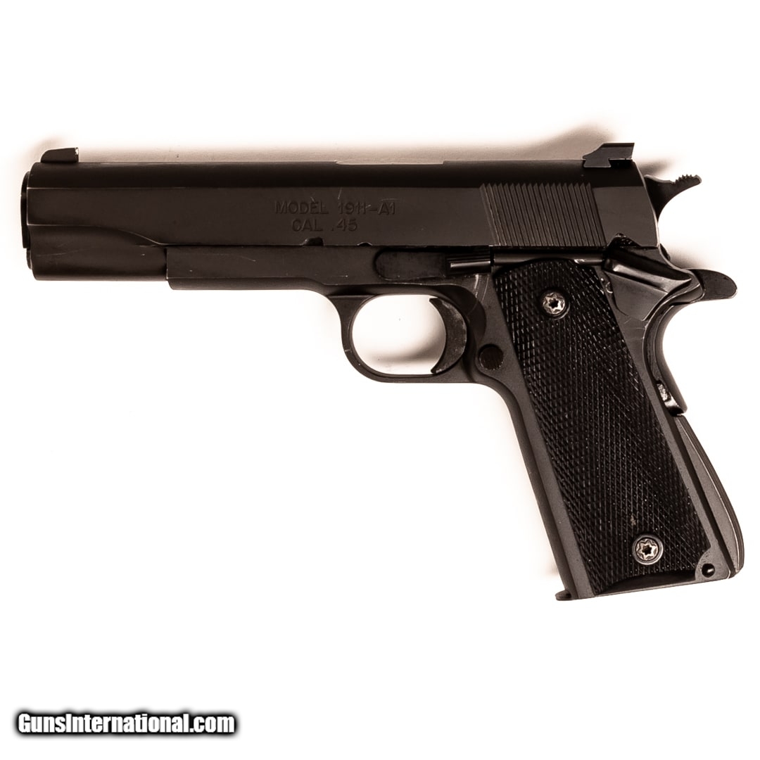 Description: Guns Listing ID: 650654 The Springfield Armory 1911-A1 is a Mil-Spec style 1911. It’s chambered in the traditional 45 ACP and will make an excellent handgun for self-defense that’s also fun to shoot. This American classic comes with the original box and two 7-round magazines. Get the best bang for your buck when you get a Certified Used Firearm . When you see the Certified Used stamp on any of our firearms, you can be confident that you’re getting exactly what you want – a gun only in very good to excellent condition and held to the highest quality standard. All Certified Used Guns come with a ‘no questions asked’ return policy . PLUS, ALL CERTIFIED USED GUNS SHIP FREE! SOLD Manufacturer: SPRINGFIELD ARMORY Model: 1911 A1 Caliber Info: .45 ACP Condition: Used - Certified Barrels: 5 barrel Finish: BLACK |