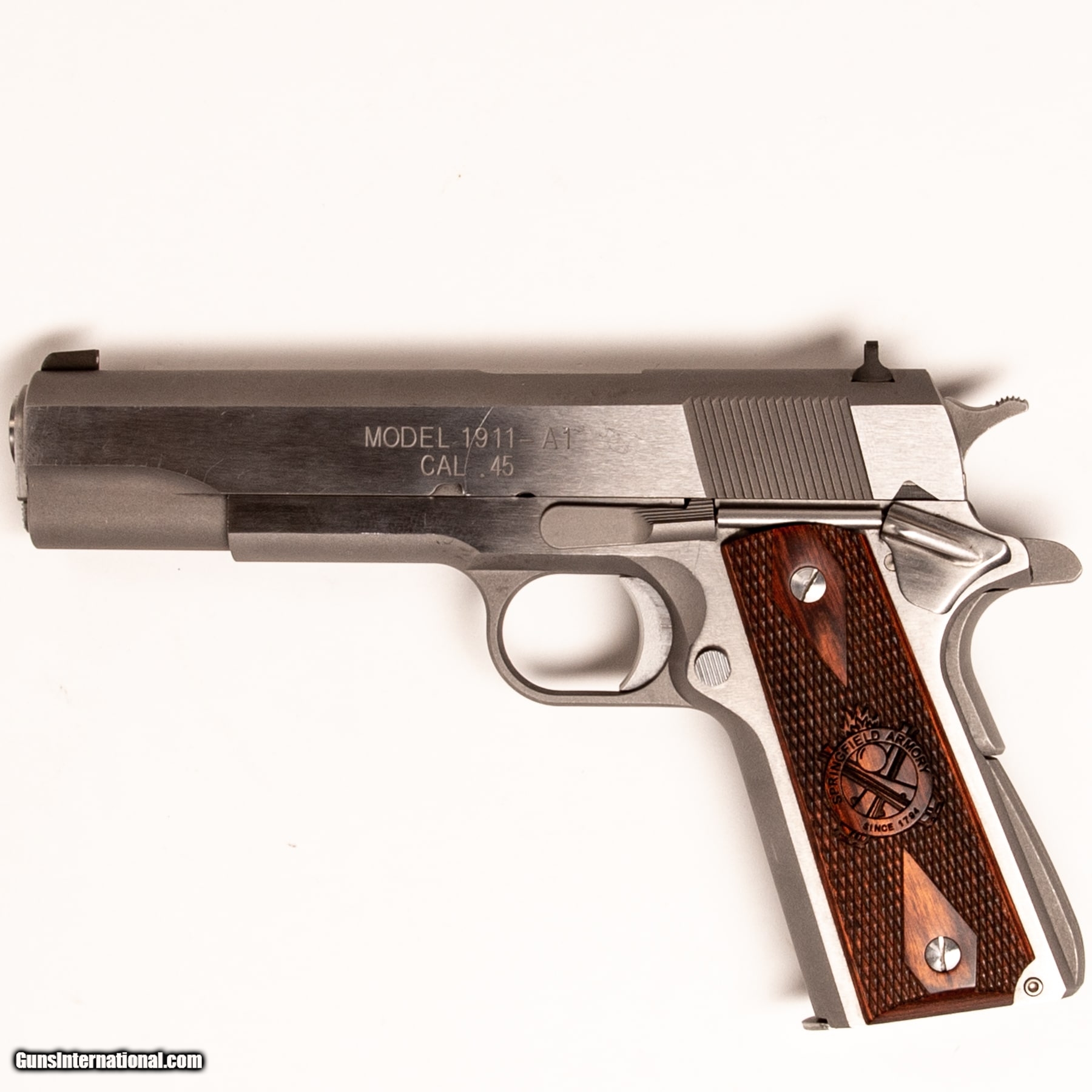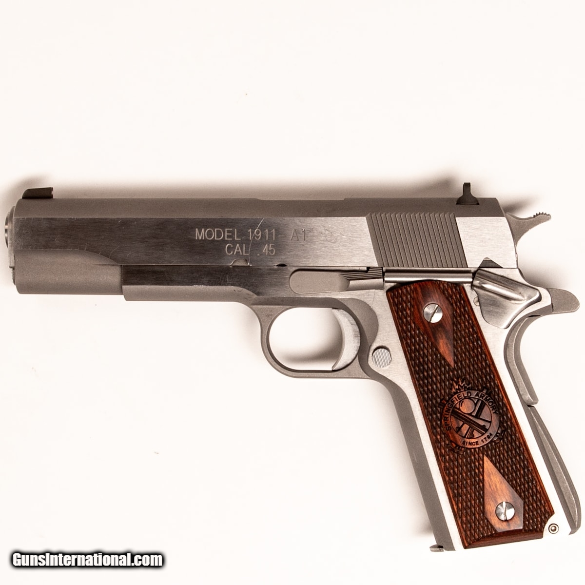 Description: Guns Listing ID: 651531 The Springfield Armory 1911-A1 is a Mil-Spec style 1911. It’s chambered in the traditional 45 ACP and will make an excellent handgun for self-defense that’s also fun to shoot. This American classic comes with two 7-round magazines and extra side panels. SOLD Manufacturer: SPRINGFIELD ARMORY Model: 1911-A1 Caliber Info: .45 ACP Condition: Used - Certified Barrels: 5 barrel Finish: STAINLESS |