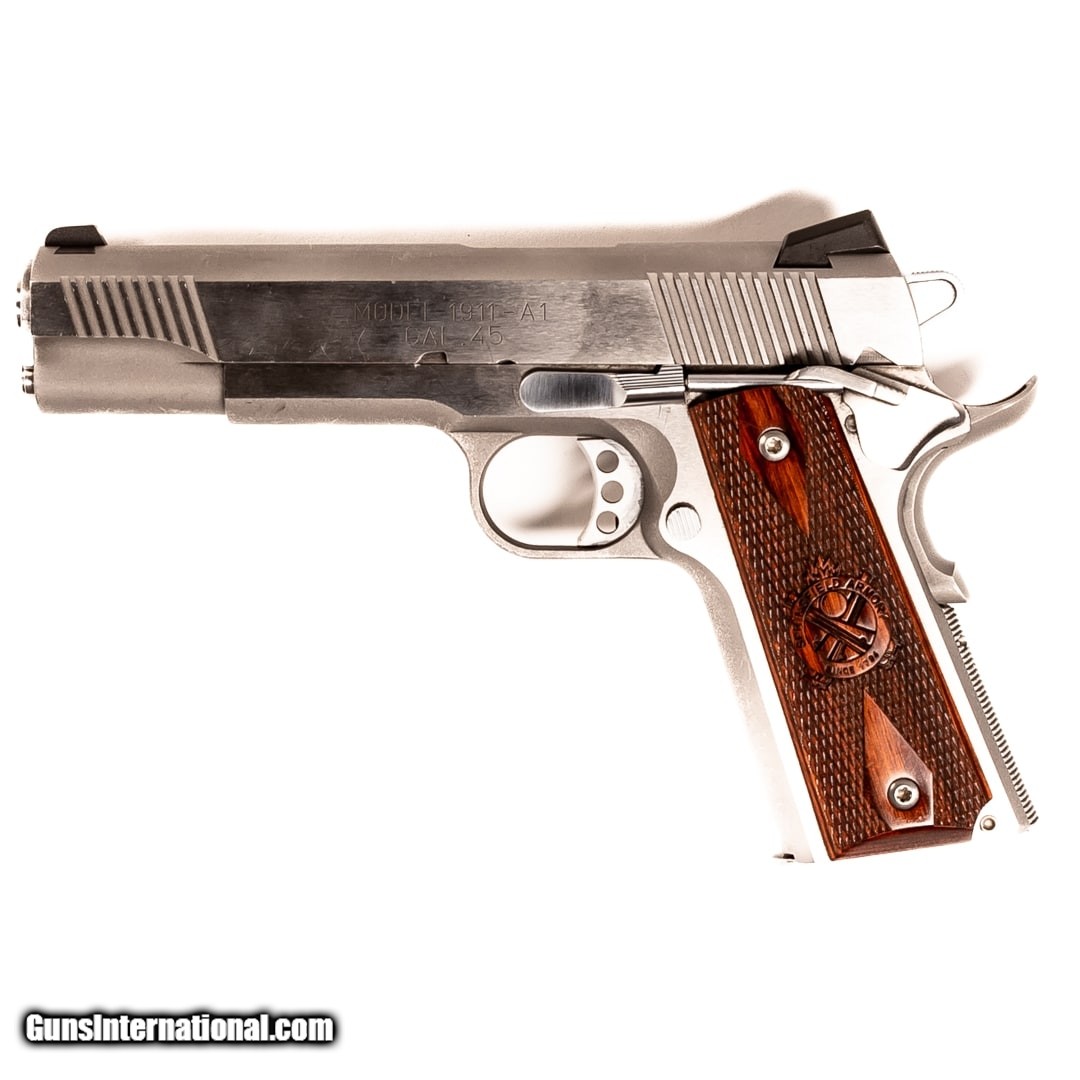 Description: Guns Listing ID: 685434 The Springfield Armory Model 1911-A1 is a Mil-Spec style 1911. It is fun to shoot and would make a fantastic handgun for self-defense. An American classic, this 1911-A1 includes one 7-round magazine. Get the best bang for your buck when you get a Certified Used Firearm . When you see the Certified Used stamp on any of our firearms, you can be confident that you’re getting exactly what you want – a gun only in very good to excellent condition and held to the highest quality standard. All Certified Used Guns come with a ‘no questions asked’ return policy . PLUS, ALL CERTIFIED USED GUNS SHIP FREE! SOLD Manufacturer: SPRINGFIELD ARMORY Model: 1911-A1 Caliber Info: .45 ACP Condition: Used - Certified Barrels: 5 barrel Finish: STAINLESS |