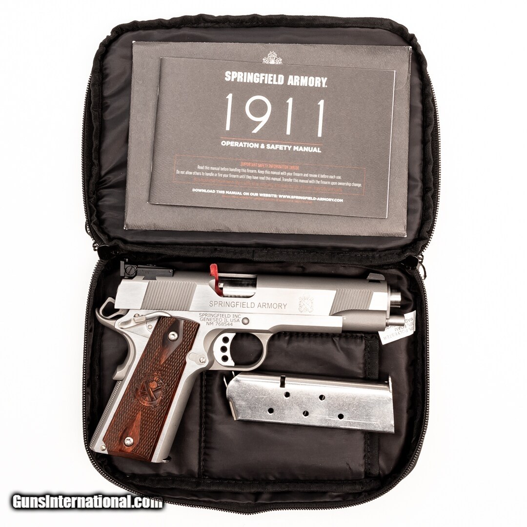 Description: Guns Listing ID: 876911 The Springfield Armory 1911-A1 is a Mil-Spec style 1911. It will make an excellent handgun for self-defense that‚‚s also fun to shoot. This American classic is in excellent condition! It has a safety and includes the original box, soft case, owner‚‚s manual, and two 7-round magazines. Get the best bang for your buck when you get a Certified Used Firearm . When you see the Certified Used stamp on any of our firearms, you can be confident that you’re getting exactly what you want – a gun only in very good to excellent condition and held to the highest quality standard. All Certified Used Guns come with a ‘no questions asked’ return policy . PLUS, ALL CERTIFIED USED GUNS SHIP FRE SOLD Manufacturer: SPRINGFIELD ARMORY Model: 1911-A1 Caliber Info: .45 ACP Condition: Used - Certified Barrels: 5 BARREL Finish: STAINLESS |