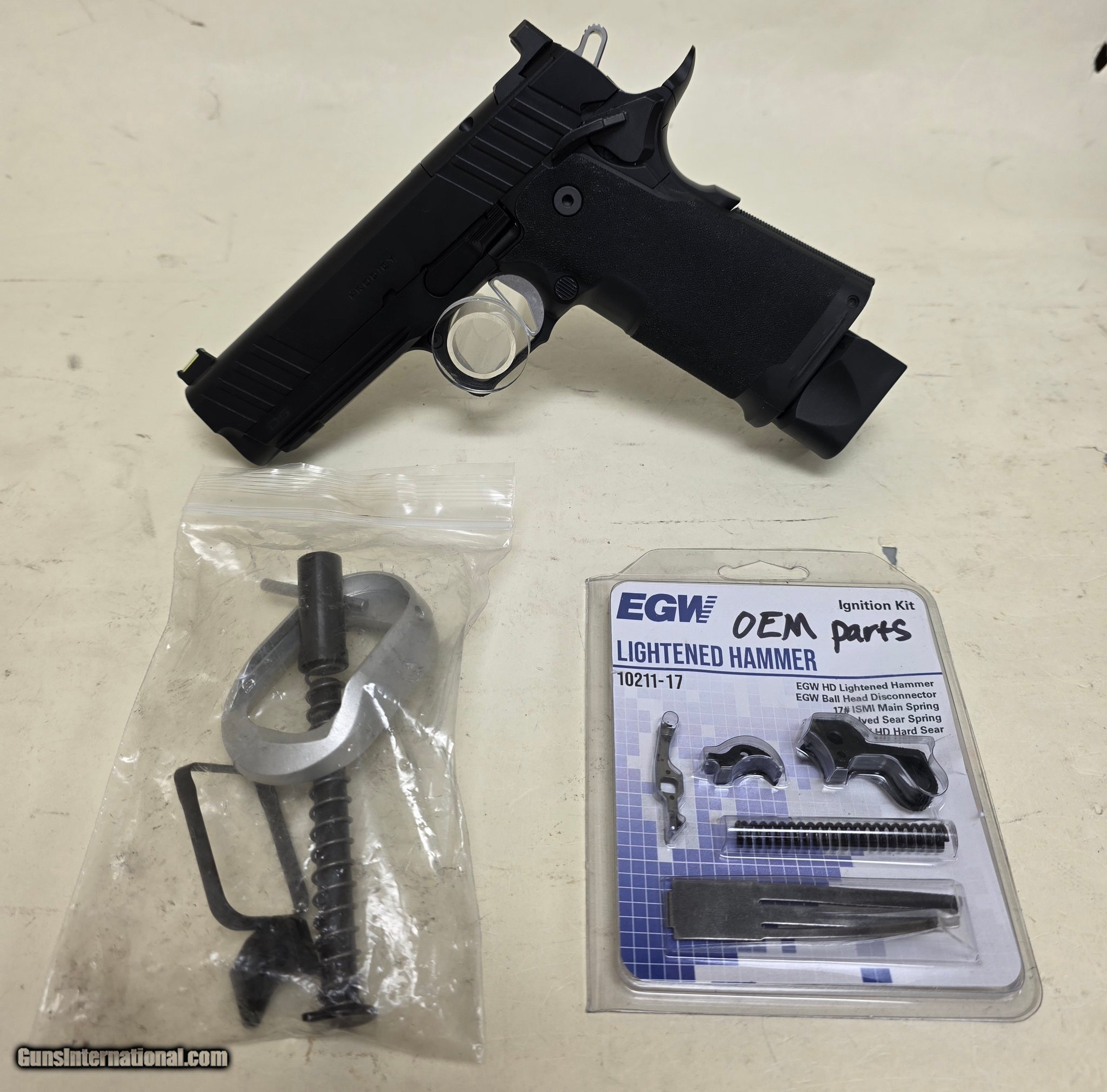 Description: Guns Listing ID: 585796 This is a used Springfield Prodigy double stack 2011 style pistol in 9mm. Gun is in good shape with some signs of firing and handling including minor finish scratches and wear. Has been fit with an EGW lightened hammer kit. Includes gun, 1 mag, and original trigger parts along with a magwell. Manufacturer: SPRINGFIELD ARMORY Model: 1911 DS PRODIGY Caliber Info: 9MM LUGER (9x19 PARA) Condition: Used - Non-Certified Barrels: 4.25" BARREL Action: SEMI AUTOMATIC Finish: black Price: $999.99 Contact Seller |