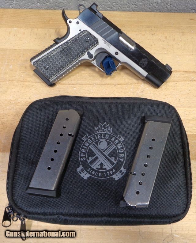 Description: Guns Listing ID: 847562 Very good condition with a few minor handling marks. Comes with three magazines and soft pouch, no box. SOLD Manufacturer: SPRINGFIELD ARMORY Model: 1911 Emissary Caliber Info: .45 ACP Condition: Used - Non-Certified Barrels: 4.25 BARREL Finish: STAINLESS AND BLACK |