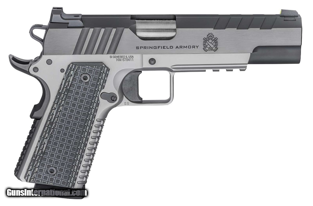 Description: Guns Listing ID: 321583 Tasked with a special mission, the Emissary bridges defensive and custom pistols delivering a bold and capable addition to the Springfield Armory family of 1911‚‚s. Built on a durable foundation of forged steel in its barrel, slide and frame, the Emissary offers a defensive pistol with an air of custom refinement. The pistol has a beautiful two-tone finish, with a blued carbon steel slide and a stainless-steel frame with squared trigger guard. A \"Tri-Top\" cut to the slide gives the pistol custom-grade styling, while a heavy-profile bull barrel delivers maximum accuracy and reduces felt recoil. It utilizes Springfield Armory‚‚s U-Dot sights which are ideal for defensive situations offering fast and intuitive acquisition while providing a tritium/luminescent front sight for low light conditions. The Emissary is fully wrapped in a grenade pattern texture for firm engagement in adverse conditions. The slim line VZ Grips are machined from G10 while the mainspring housing and front strap are machined to matc SOLD Manufacturer: SPRINGFIELD ARMORY Model: 1911 Emissary Caliber Info: .45 ACP Condition: new Barrels: 5 BARREL Finish: STAINLESS |