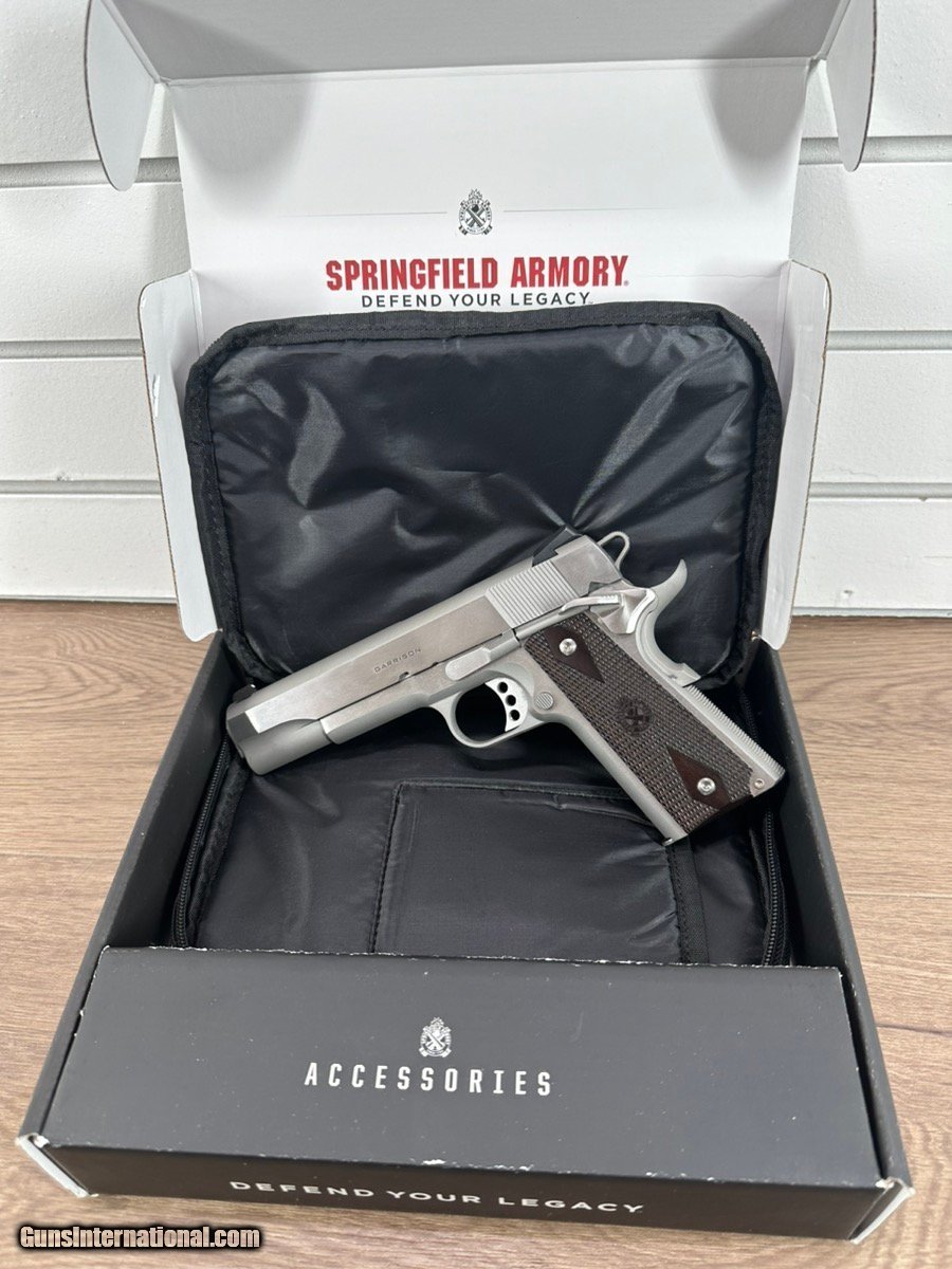 Description: Guns Listing ID: 1362875 PISTOL: SPRINGFIELD ARMORY MODEL GARRISON, SERIAL NUMBER NM902352, SEMI - AUTOMATIC, 45 ACP (45 AUTO), MATTE STAINLESS, INCLUDES ORIGINAL BOX AND PAPERS SOFT CASE AND ONE 7 ROUND MAG, 5\" BARREL, USED BUT IN GREAT CONDITION. INVENTORY #WCP024069 SOLD Manufacturer: SPRINGFIELD ARMORY Model: 1911 Garrison Caliber Info: .45 ACP Condition: Used - Non-Certified Barrels: 5 BARREL Finish: STAINLESS |