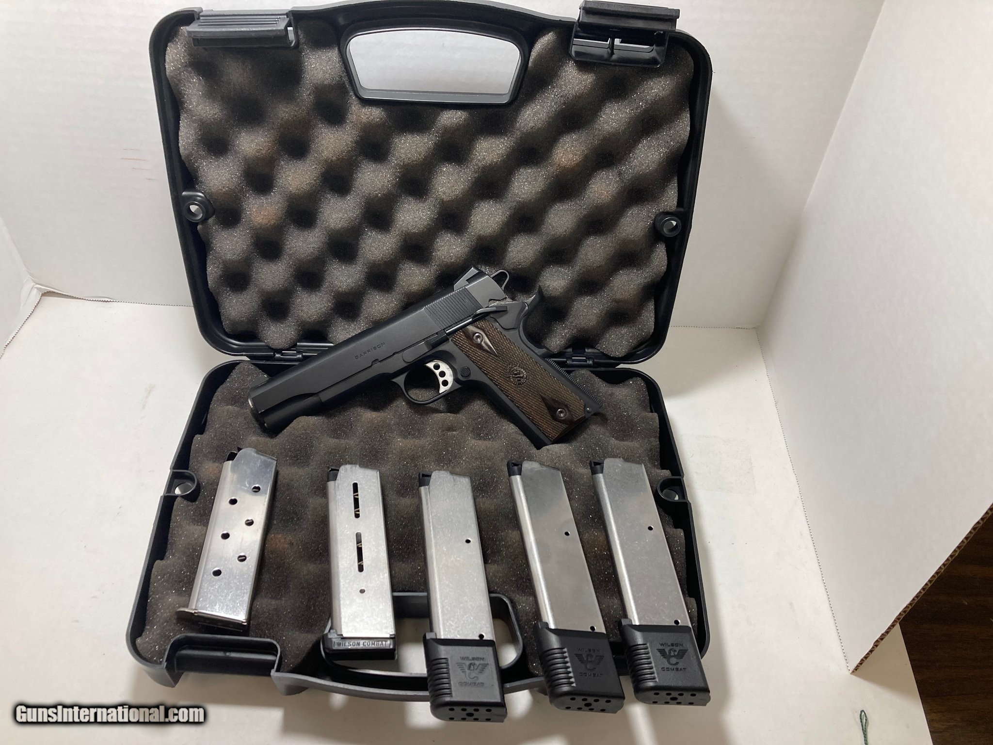 Description: Guns Listing ID: 595403 Springfield Garrison 1911 chambered in 45 ACP. Comes with aftermarket case, original 8rd mag, aftermarket 8 rd mag, 18rd and 3 10rd Wilson Combat mags. Does have a small scratch on the left side of the front of the slide as you can see from the pictures. Other than that it is as clean as they come, a 9 out of 10. Manufacturer: SPRINGFIELD ARMORY Model: 1911 GARRISON [BLUED] Caliber Info: .45 ACP Condition: Used - Non-Certified Barrels: 5" BARREL Action: SEMI AUTOMATIC Finish: blued Price: $750.99 Contact Seller |