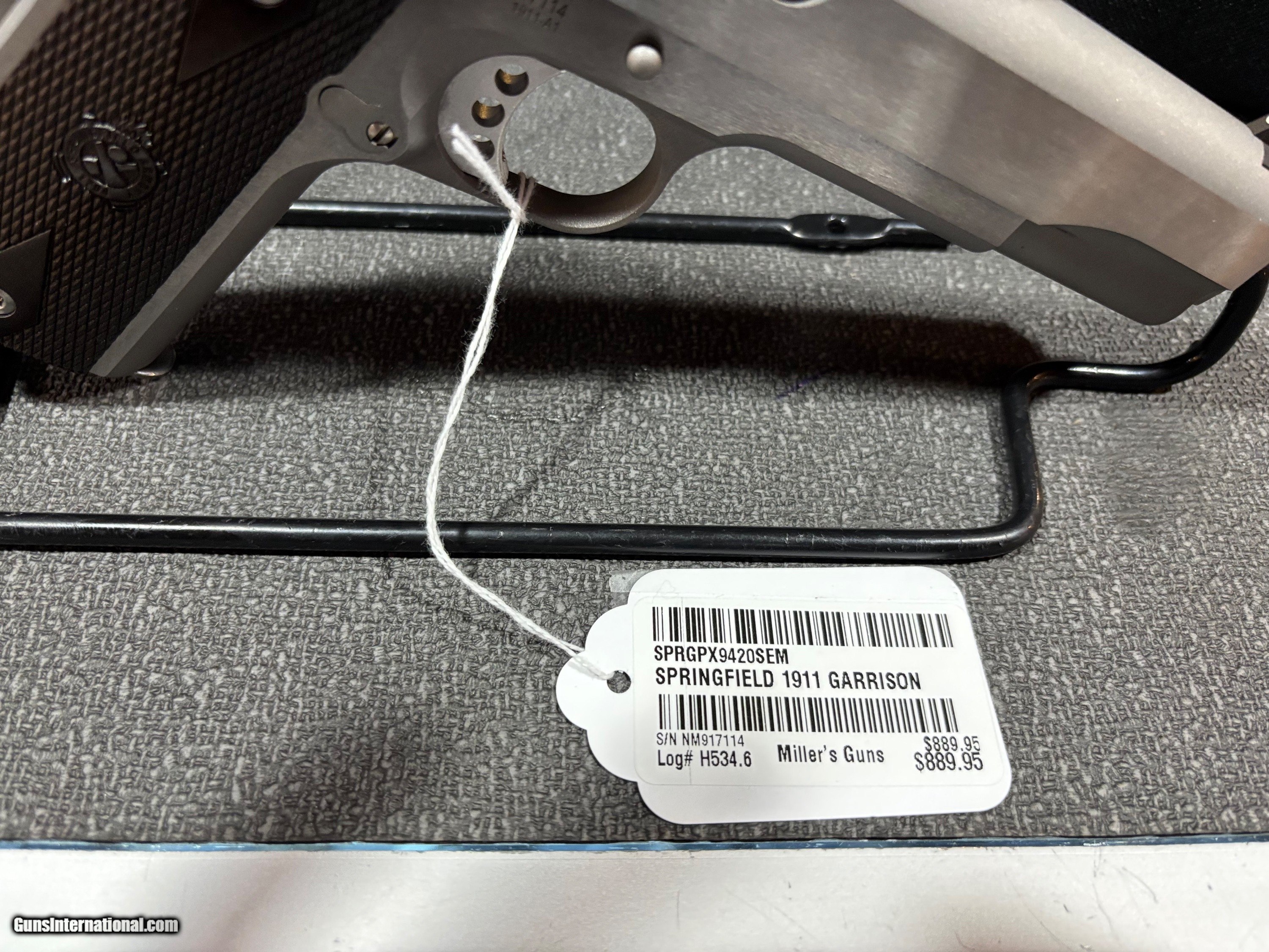 Description: Springfield 1911 Garrison .45acp NO roll mark slide 7 round capacity (1) magazine included SOLD Handgun Caliber: .45 ACP (.45 Auto) Manufacturer: Springfield Armory Model: 1911 Garrison Serial Number: NM917114 Barrel Length: 5 Condition: NEW |